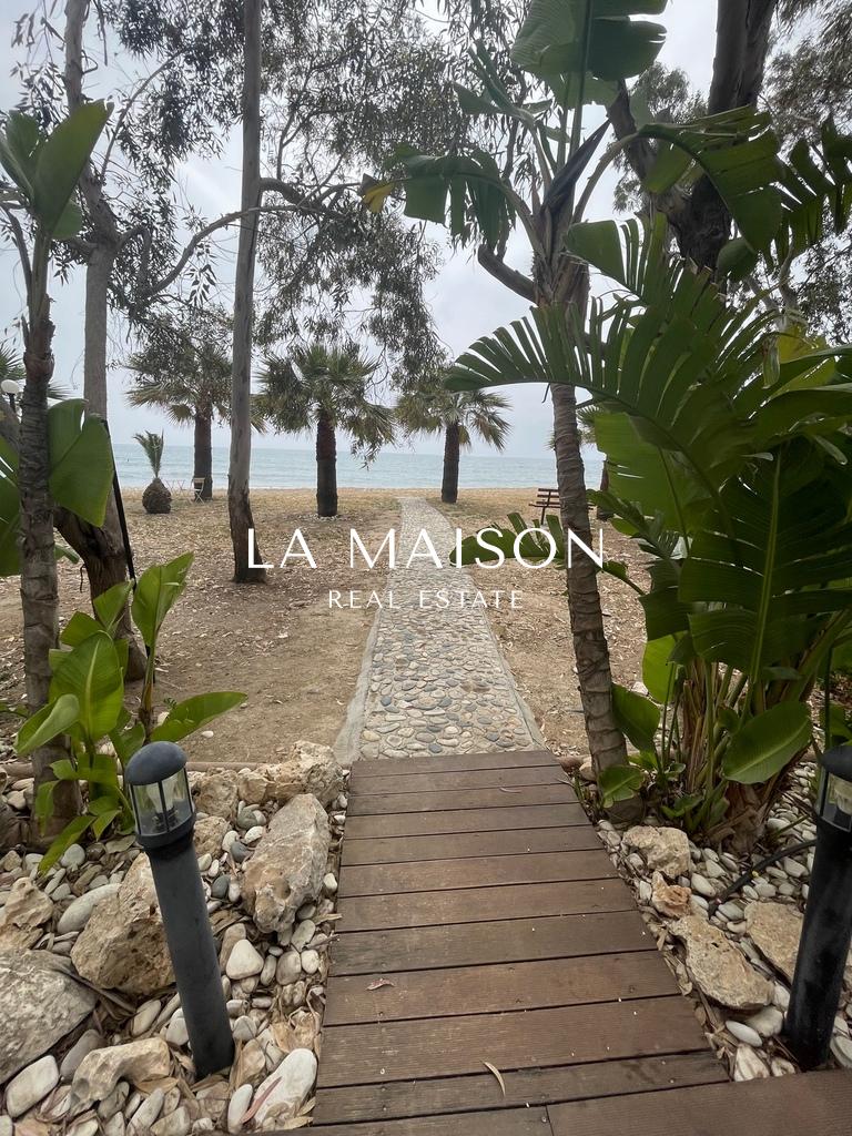 Lovely beachfront villa is now available for Rent,  situated in the peaceful Pervolia area in Larnaca. It consists of 3 bedrooms, 2 bathrooms, a spacious living room, and a modern kitchen. On the outside it has a deck garden that offers an incredible view of the Mediterranean sea.
