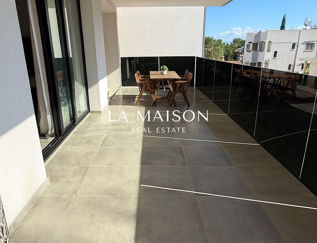 Introducing a stunning and stylish contemporary two-bedroom apartment that redefines modern living. This brand-new residence, available for rent for the very first time, spans 90 sqm of internal space plus a generous 30 sqm balcony, offering an exceptional blend of comfort and elegance. Designed with attention to detail, it features high-quality finishes and exquisite furniture throughout, creating a warm yet sophisticated atmosphere. The apartment comes fully furnished and equipped with all modern electrical appliances, including a dishwasher, washing machine with dryer, and all essential conveniences for a seamless lifestyle. Both bedrooms are spacious, with the master bedroom benefiting from an en-suite bathroom, ensuring privacy and comfort. Situated on the second floor of an impressive contemporary building, the property also offers a large storage room, dedicated parking space, underfloor heating, and full air conditioning for year-round comfort. Ideally located close to multiple schools, private and local gyms, bakeries, and a wide range of amenities, this exceptional apartment is the perfect choice for those seeking luxury, convenience, and style in one of the most desirable areas.