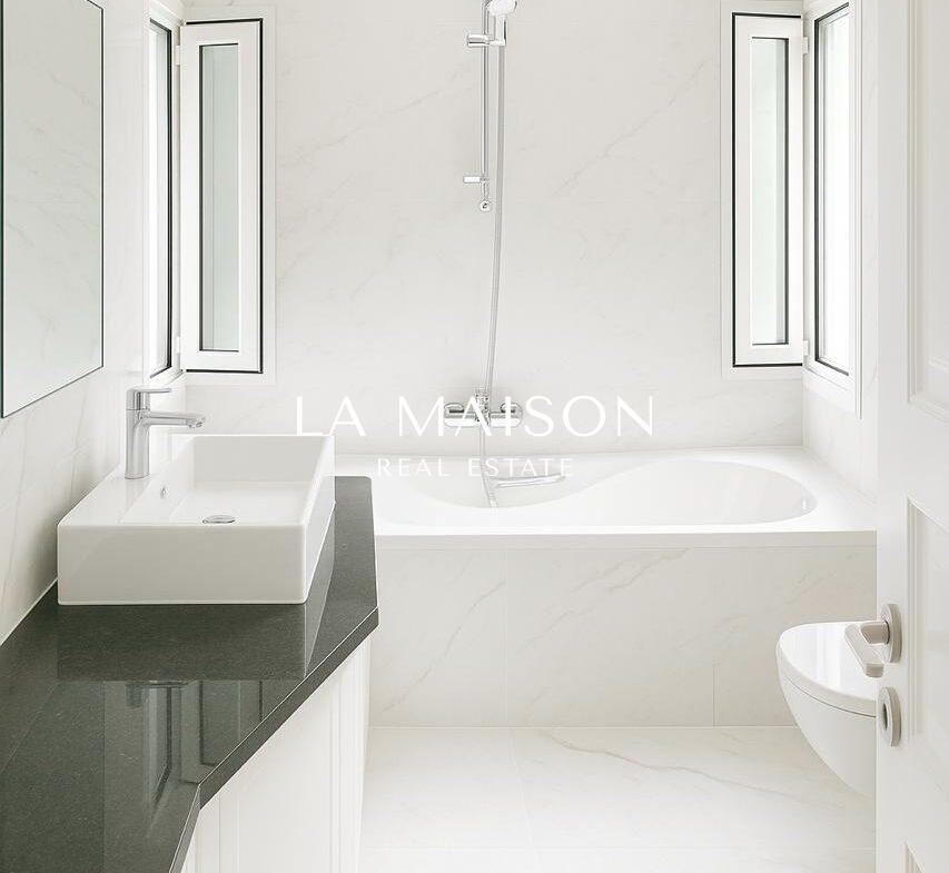 The basement provides a versatile multipurpose space including a second kitchen, a maid’s room with en-suite facilities, two extra toilets, a shower and a private parking area. The residence is equipped with central heating, air conditioning and granite flooring, combining elegance with practicality.