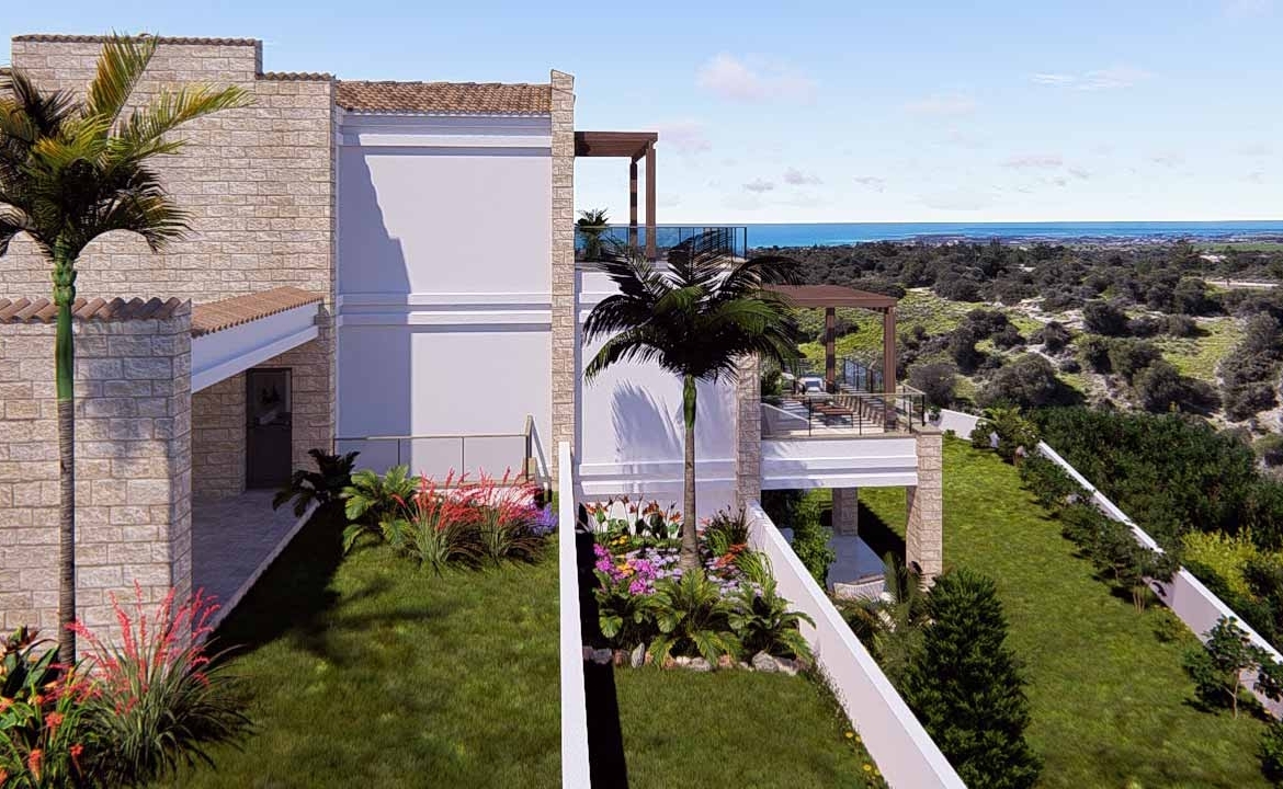 This stunning 5-bedroom villa offers a seamless blend of modern and Mediterranean architecture. Located on a large plot, it includes a private swimming pool, generous living spaces, and large terraces, all overlooking the picturesque Mediterranean sea.