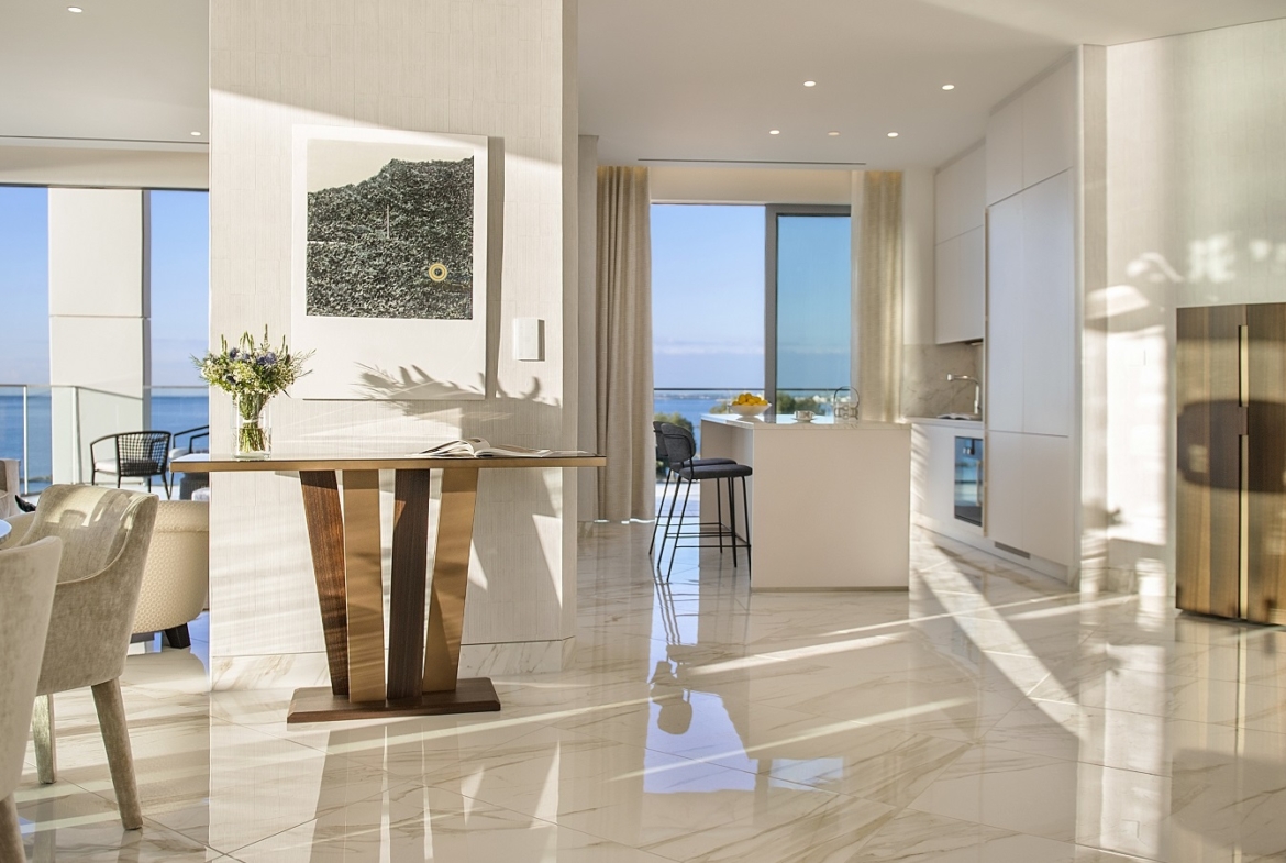 This building seamlessly melds the captivating allure of upscale coastal living with the elegance of urban sophistication, showcasing remarkable design ingenuity and unmatched levels of refinement.