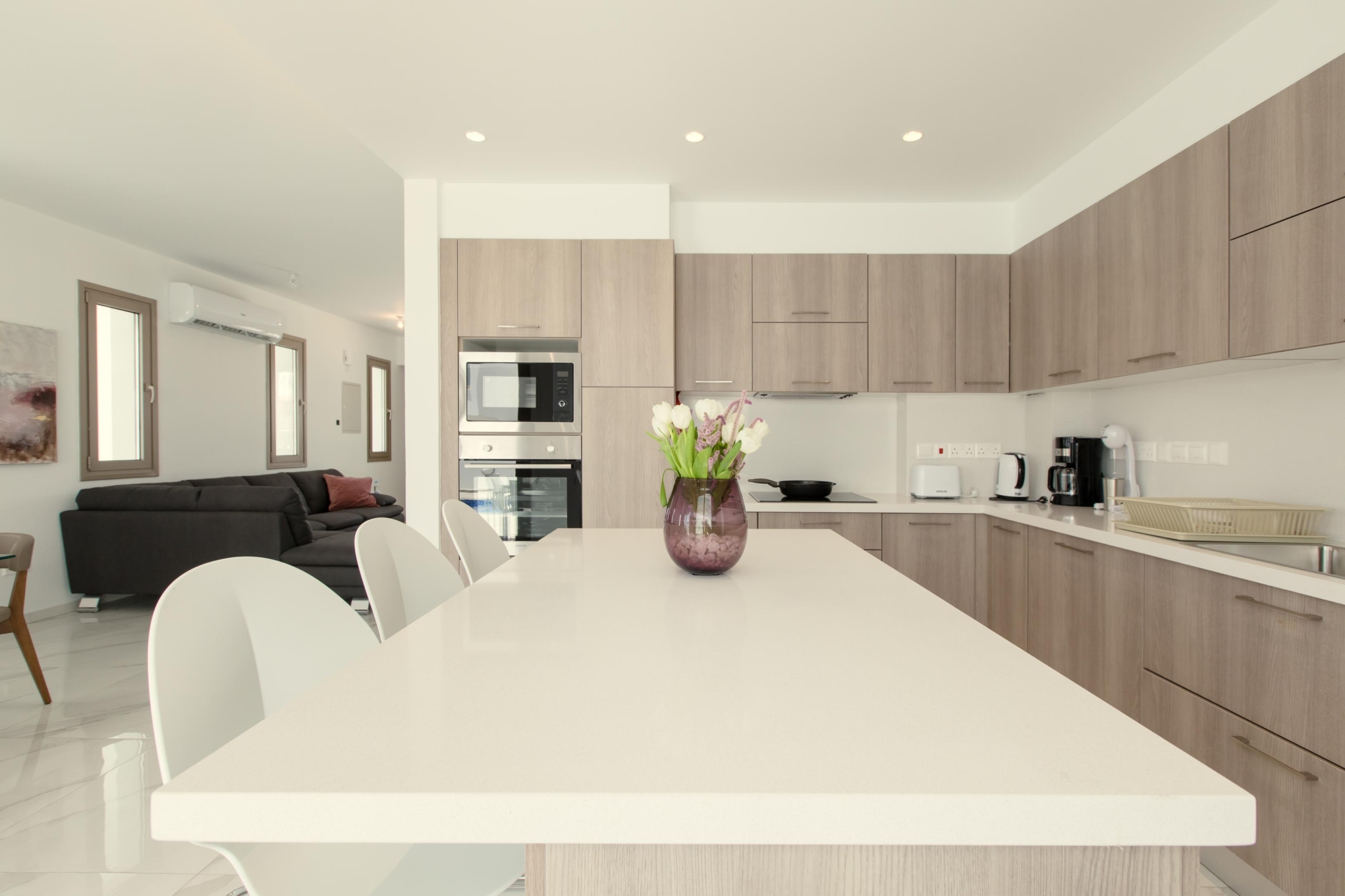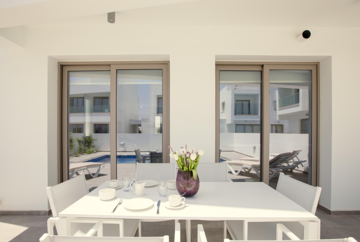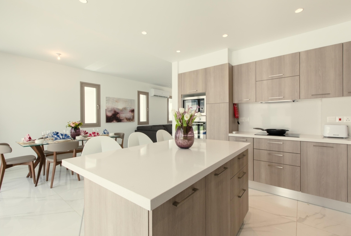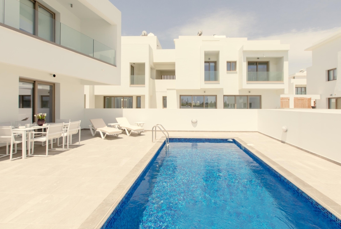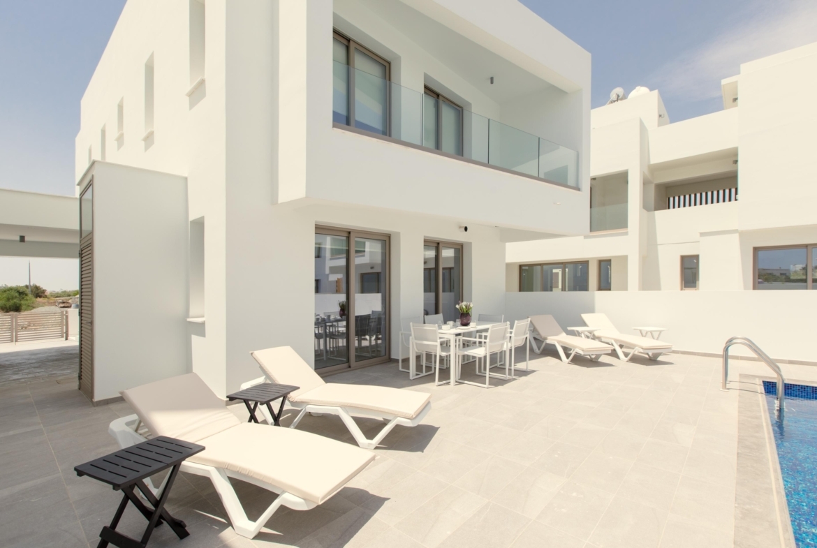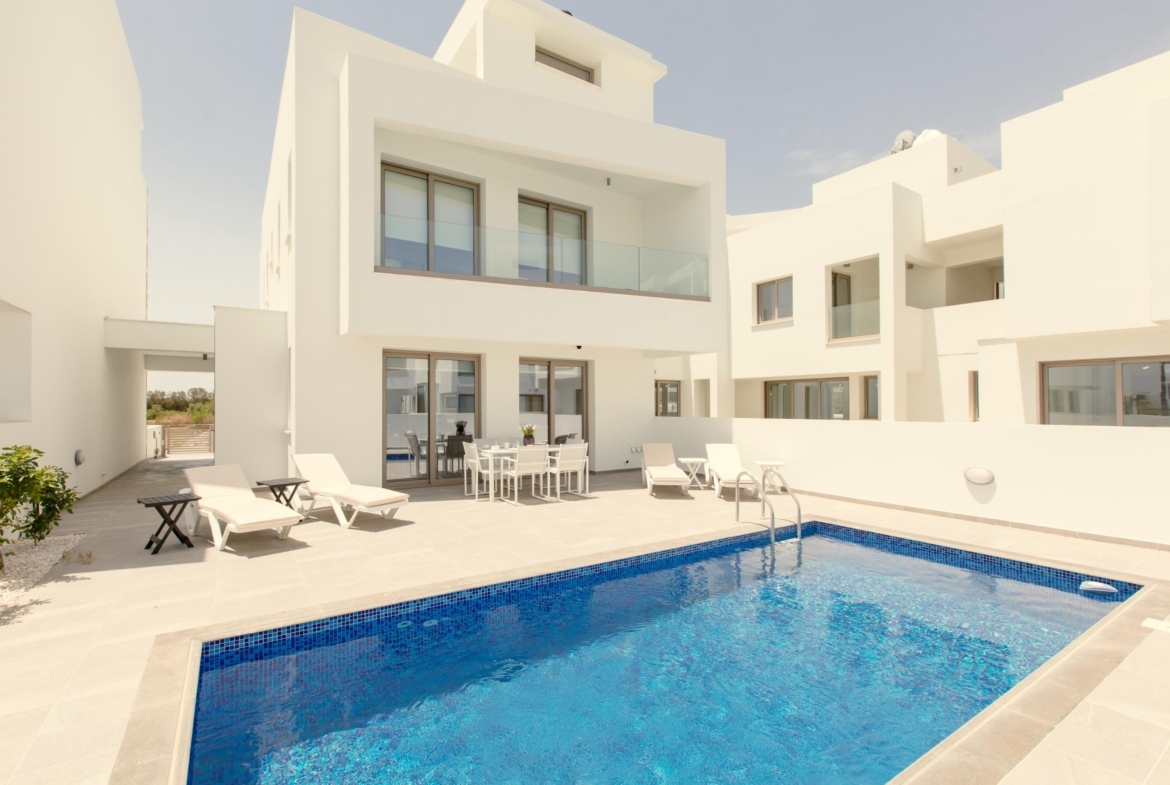 Experience coastal living in this elegant 3+1 bedroom villa, just steps from the beach. Designed for comfort and style, it features an open-plan kitchen and living area, a private swimming pool, and a stunning roof garden. Enjoy the convenience of private parking and a peaceful residential setting while staying close to essential amenities.