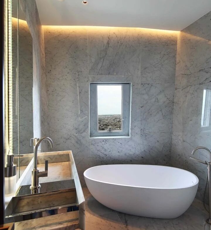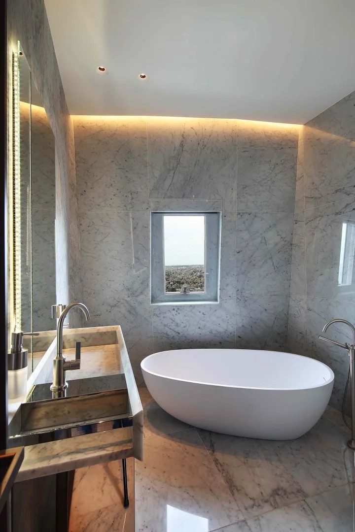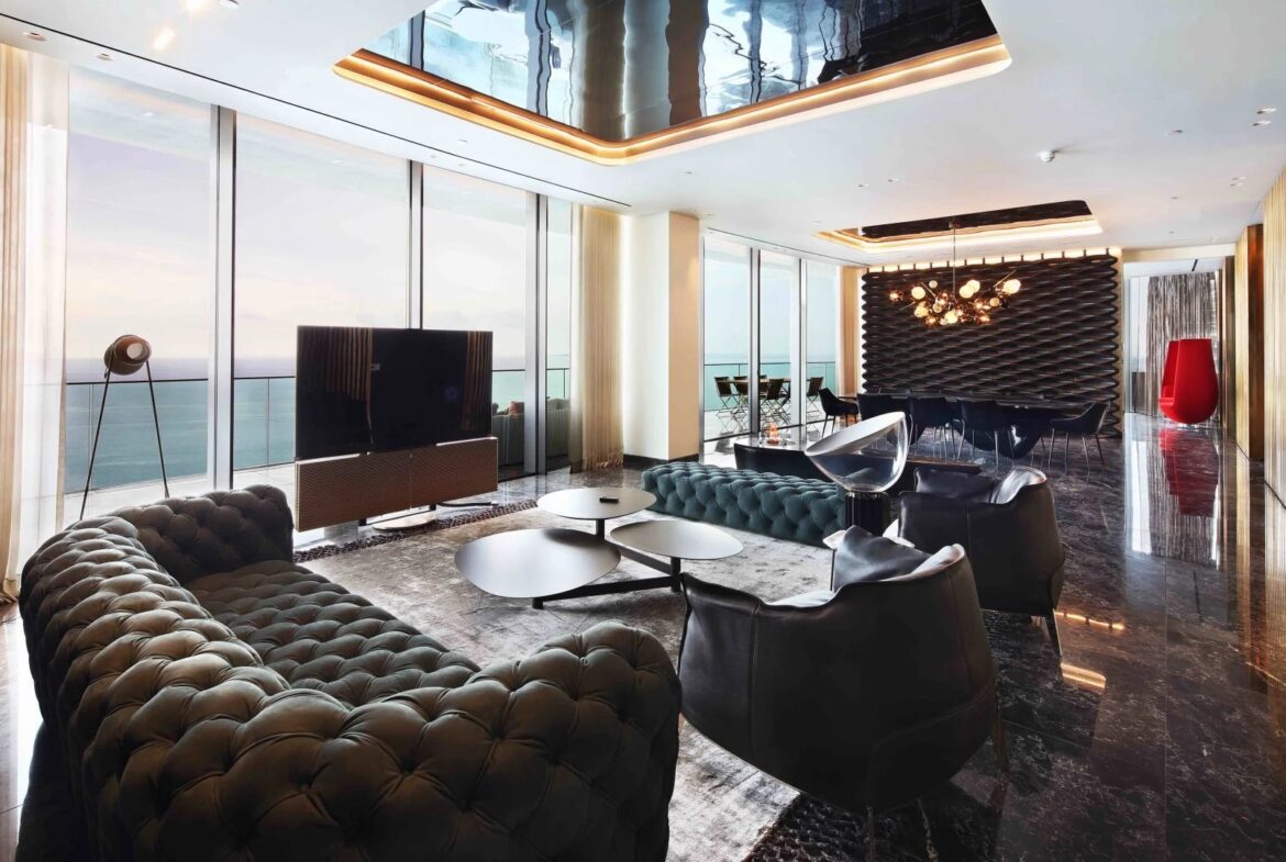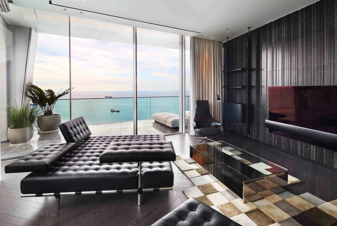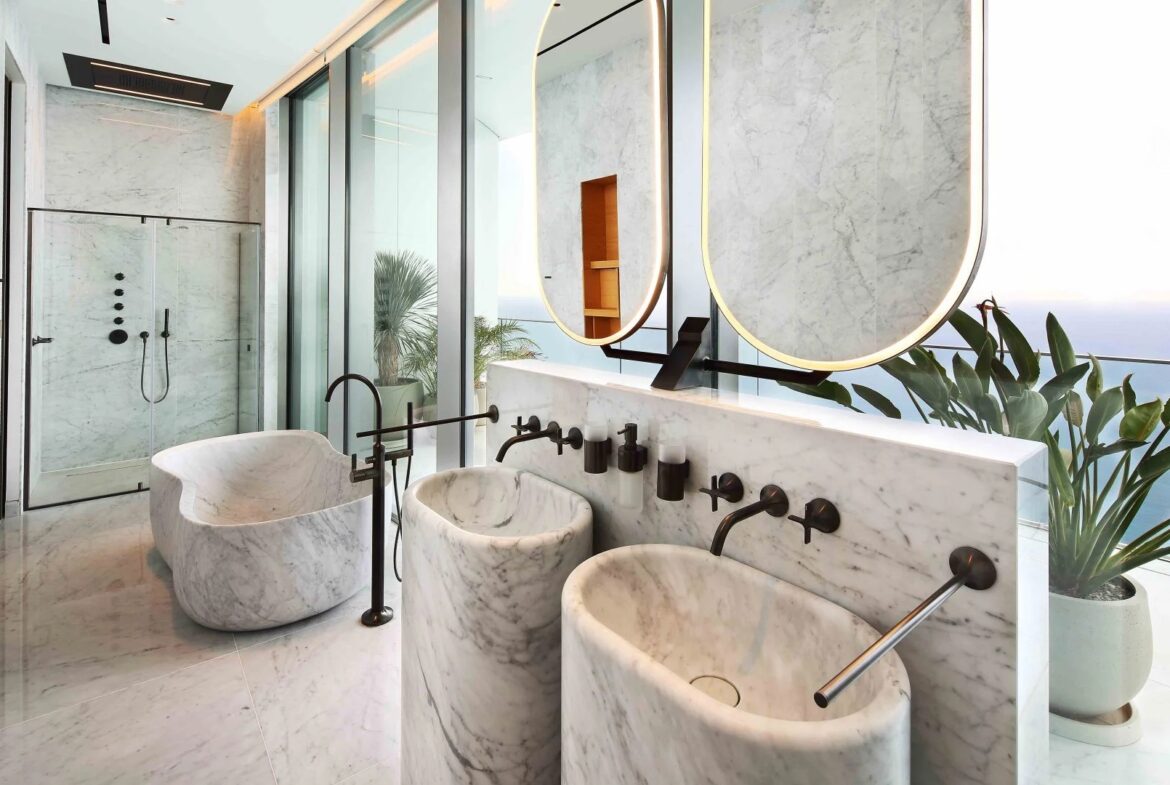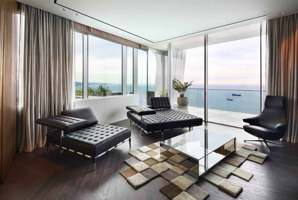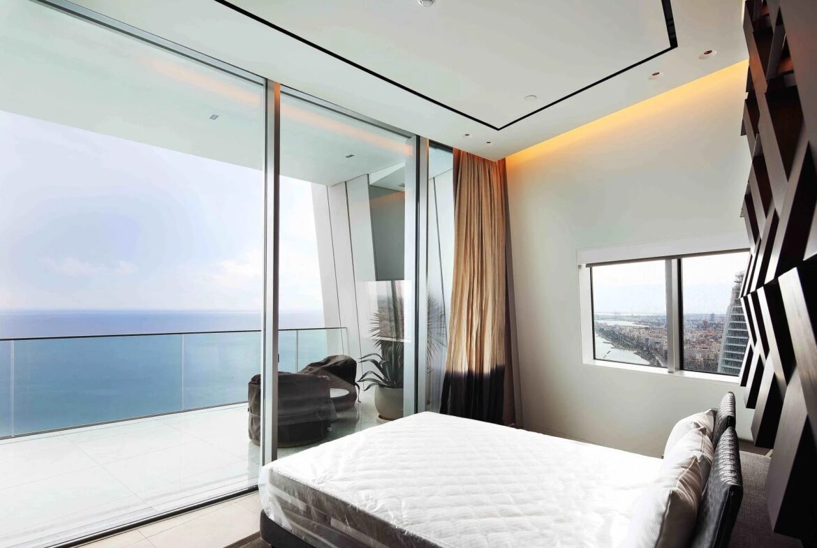 This amazing four-bedroom duplex residences offer an exceptionally spacious living experience. Featuring double-height atriums, open-plan elegance, and luminous finishes, these homes are the epitome of superior craftsmanship. Panoramic 270° vistas through grand full-height windows or from expansive balconies provide breathtaking views. The cityscape, mountain ranges, the vast Mediterranean, and the curvature of the horizon come together, blending nature with urban living. The imaginative and intuitive spatial design fosters a seamless flow throughout the large residences, while the bold, contemporary décor exudes a refined simplicity.