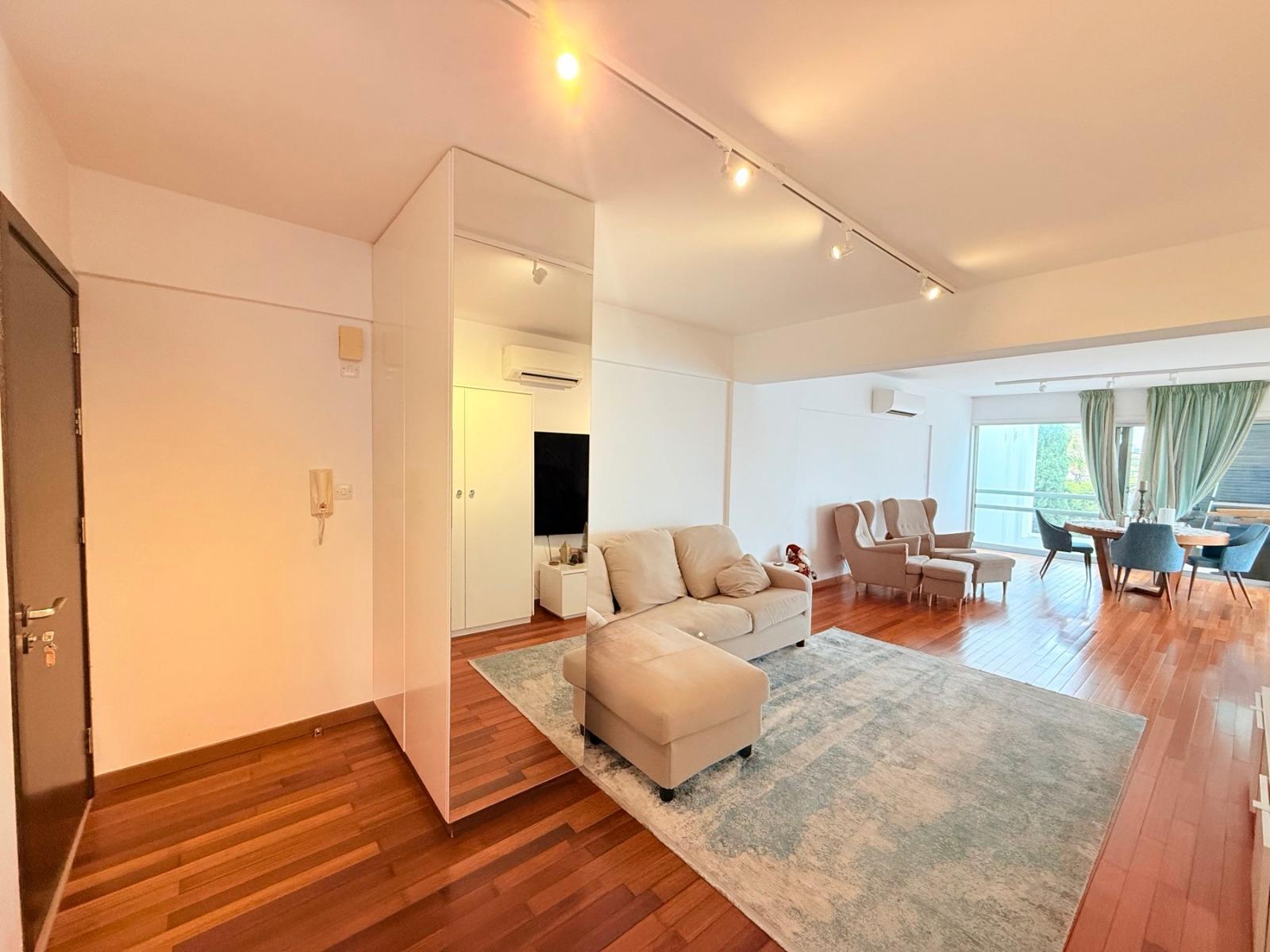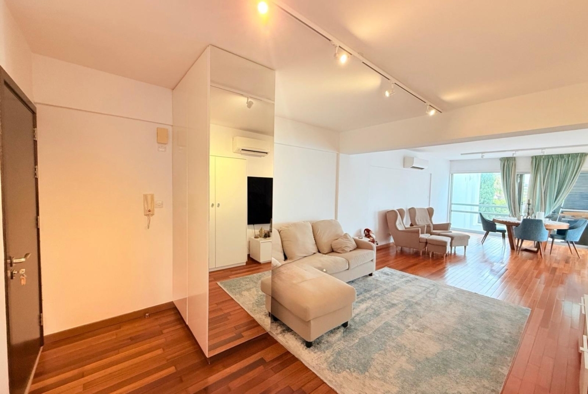 Situated in one of Nicosia’s most sought after neighborhoods, this bright three bedroom apartment offers generous internal spaces and a practical layout. The open plan design creates a seamless flow between the living, dining, and kitchen areas. With a master en-suite, guest WC, covered parking, and a spacious veranda, it combines comfort with everyday convenience. An excellent choice for families or investment.