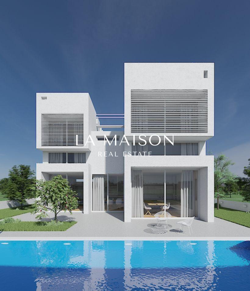 Situated in a prime residential neighborhood of Engomi, Nicosia, this project leverages its south and west orientations to optimize views, sunlight, and airflow. A front garden acts as a natural foreground, seamlessly integrating the entrances to the two wings. The ground floor includes common and private facilities along with parking. The first and second floors each offer three-bedroom and four...