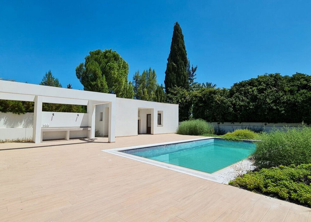 Luxurious detached two-story residence situated in the Archangelos Area of Strovolos. This contemporary home features a generous ground floor layout comprising a spacious living room with a fireplace, a dining area, a fully equipped kitchen, and a guest toilet. Upstairs, there are five bedrooms, each with its own en-suite bathroom. The basement hosts storage spaces and an en-suite...