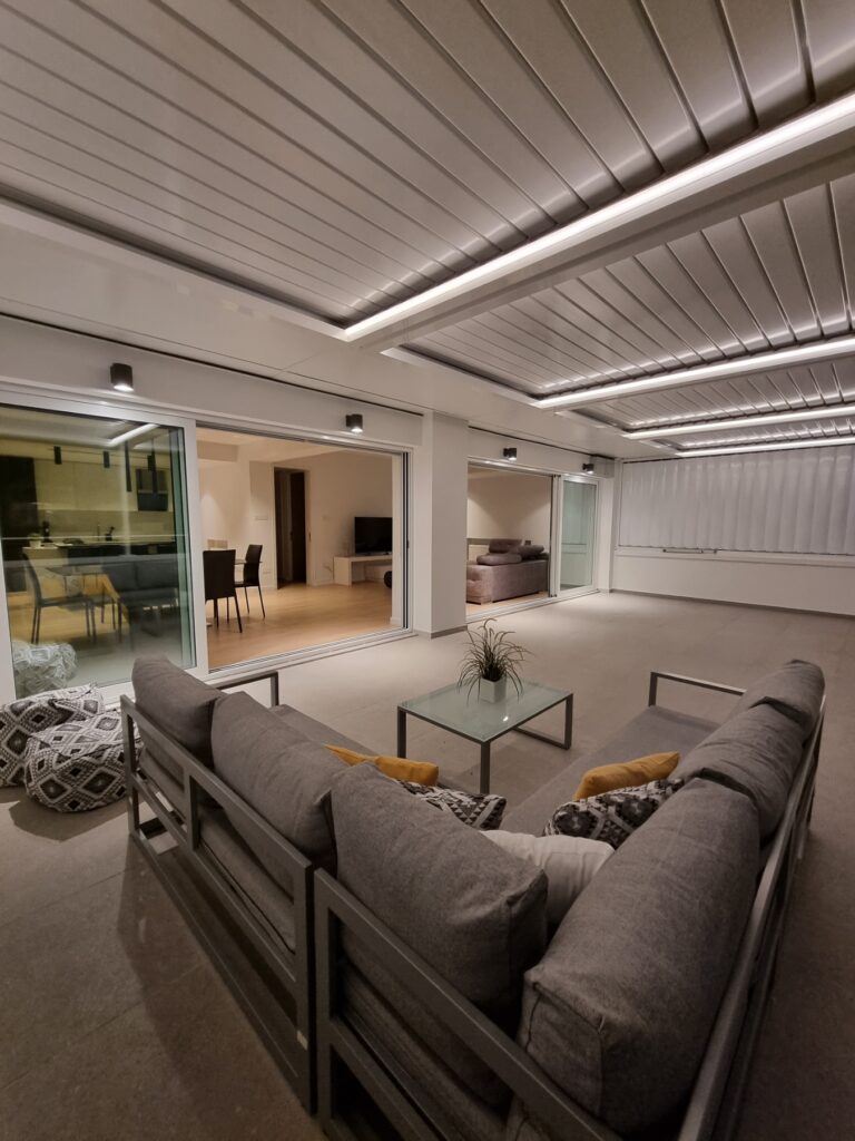 This elegant apartment, conveniently situated within walking distance to Nicosia's city center, offers a luxurious urban lifestyle. Located on the third floor, it boasts a generous internal area of 107 square meters, complemented by an 18-square-meter front veranda linking the two bedrooms, and a sprawling 42-square-meter space behind the living room, adorned with an aluminum pergola featuring digital...