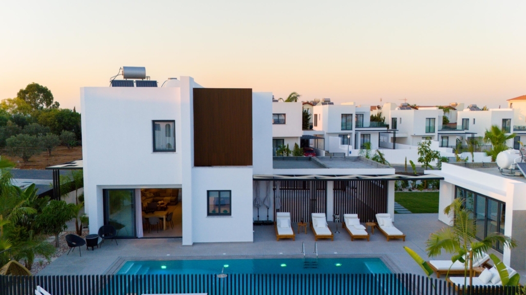 This luxurious villa is located in the sought-after seaside resort of Protaras, within the rapidly developing area of Pernera and near the new Paralimni Marina. The villa showcases a modern design with clean, minimal geometric lines and natural tones, blending elegance and comfort. It features a private swimming pool, a beautifully landscaped garden, and a rooftop terrace offering stunning sea views. The...