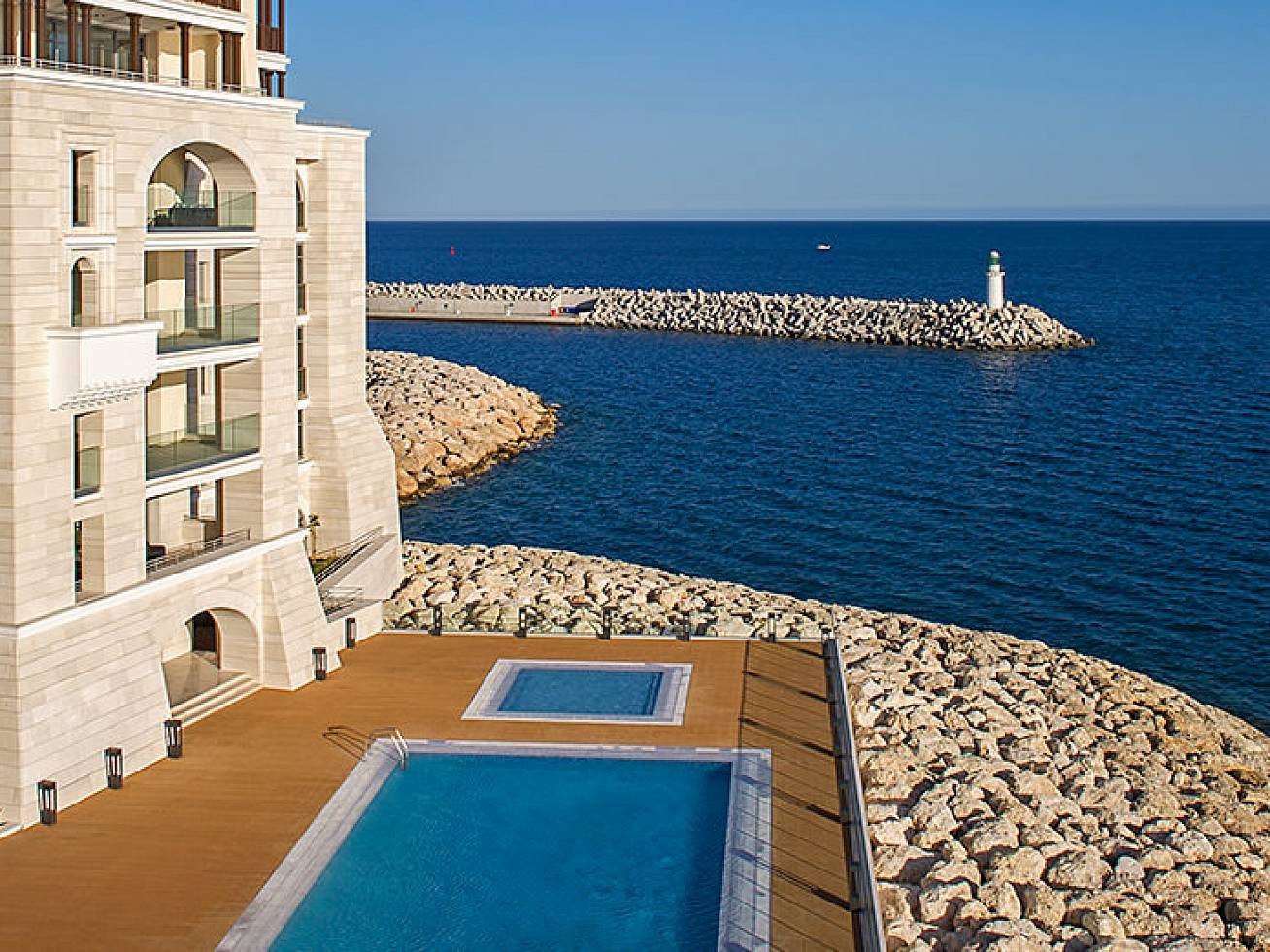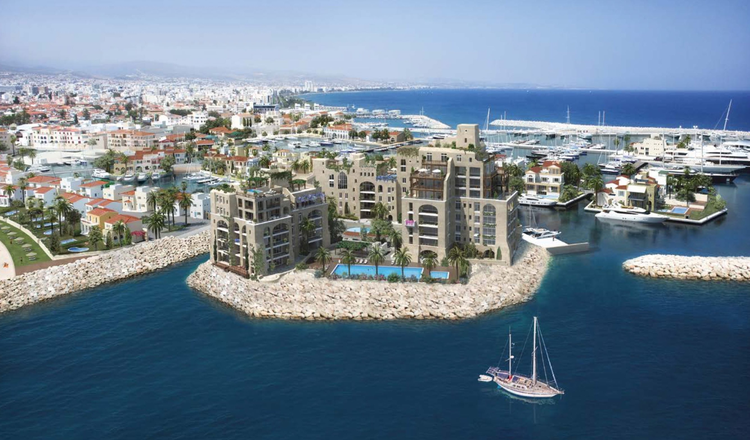 Located on the water, overlooking the Marina and the city of Limassol, it is near to the development’s upscale dining, shopping, and entertainment options.