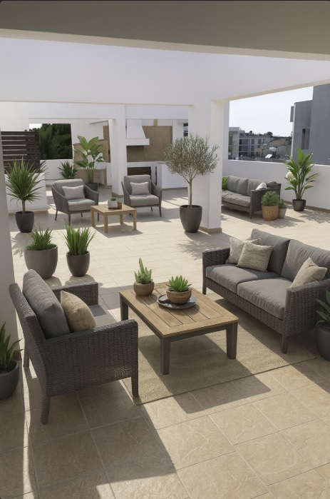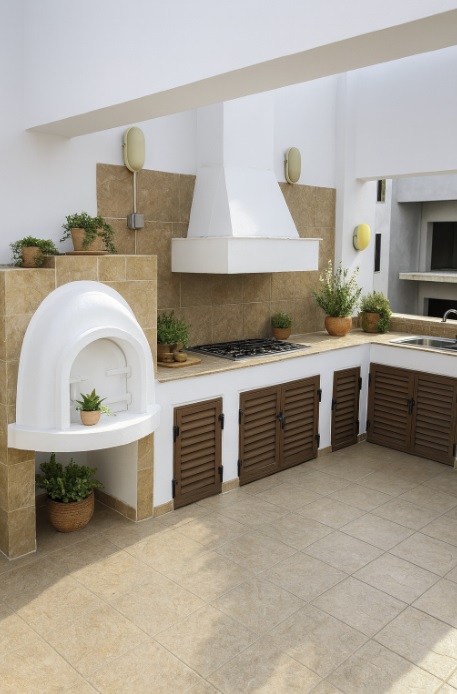 The apartment features 3 bedrooms, 2 bathrooms, 108 sq.m. of internal areas, 26 sq.m. of covered verandas, and 130 sq.m. of uncovered verandas. It also includes a designated space for a barbecue and a traditional oven, ideal for gatherings with family and friends.
