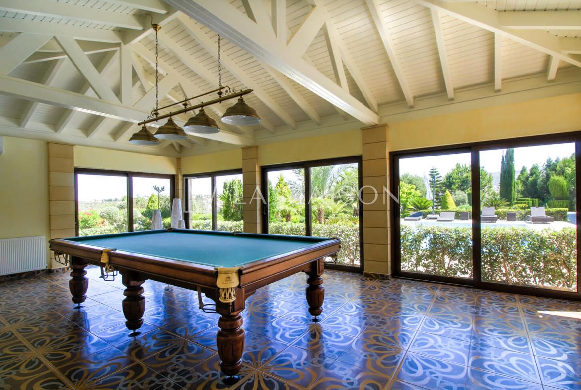 Upon exiting the villa, one will notice a detached entertainment room to the left of the large swimming pool, offering a full size billiards table and plenty space for one to include a bar for those who want to socialise with the full experience of a sports bar. To the right of the swimming pool on the very edge of the garden, one may enjoy complete serenity with their own private jacuzzi, with amazing views over the golf course below and towards the Blue Mediterranean Sea.