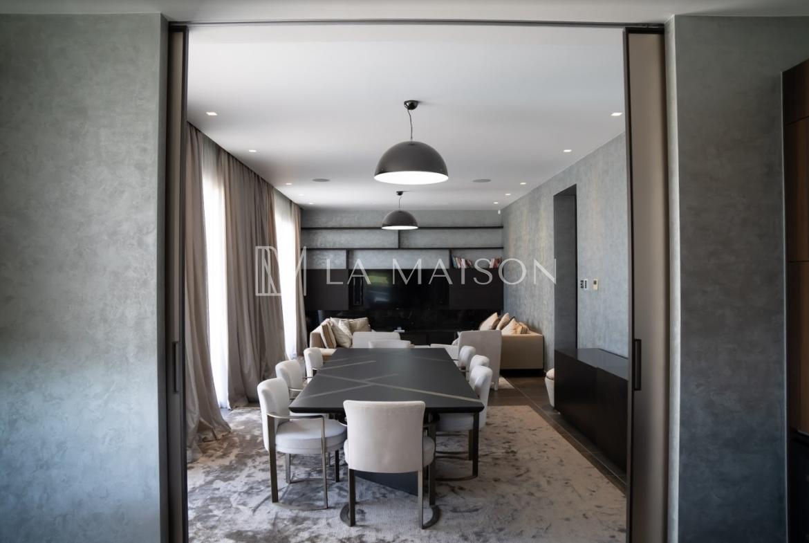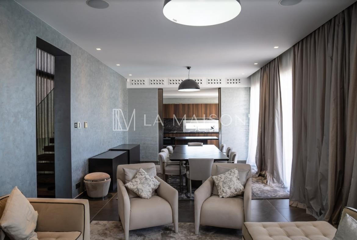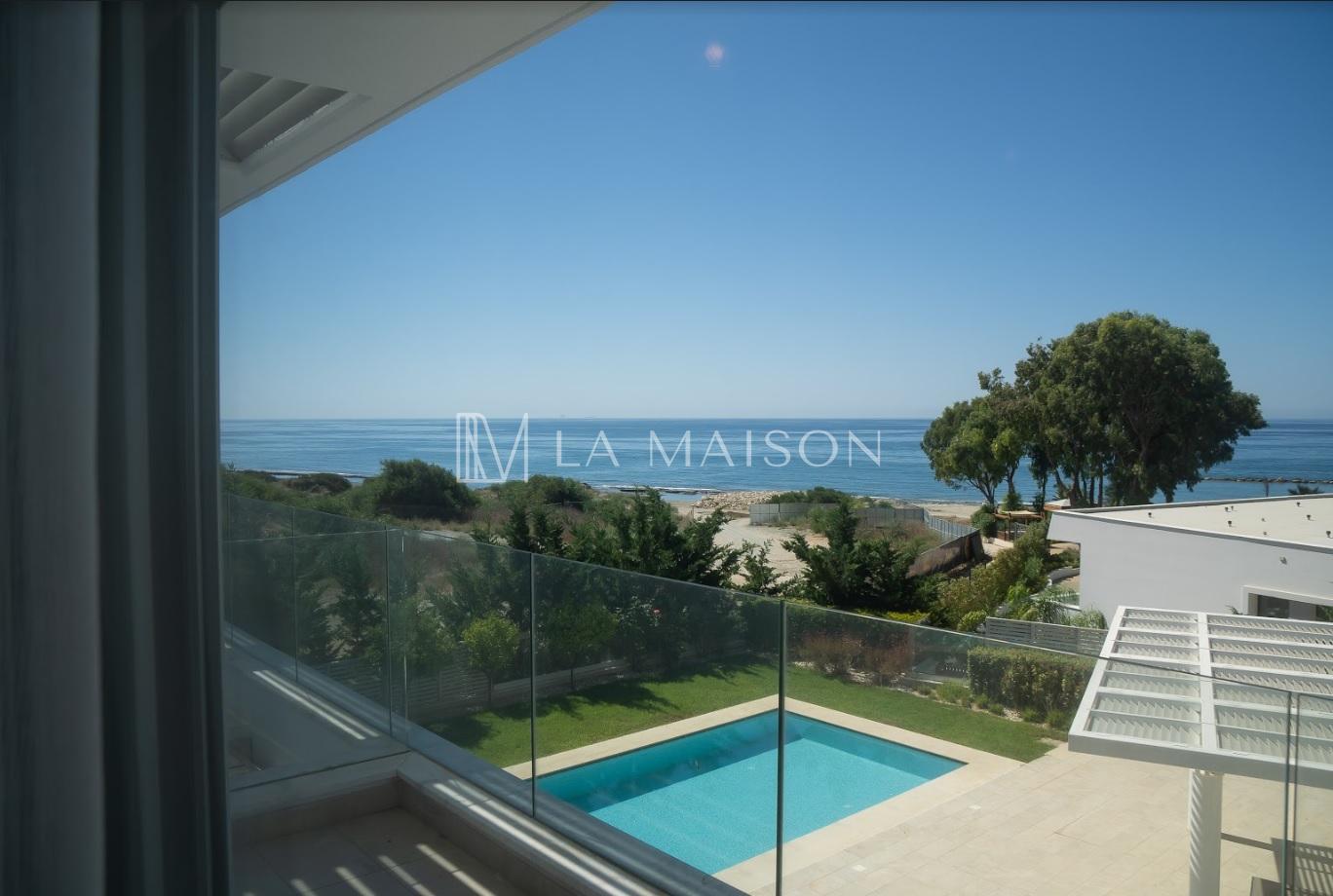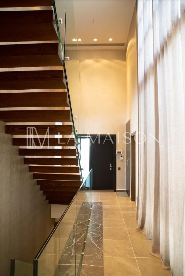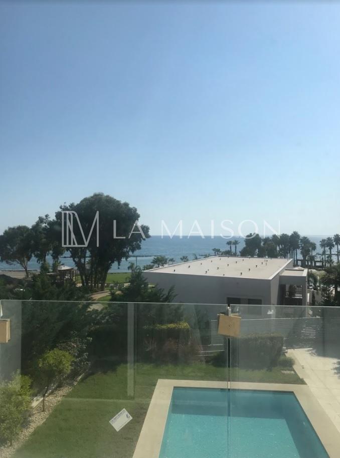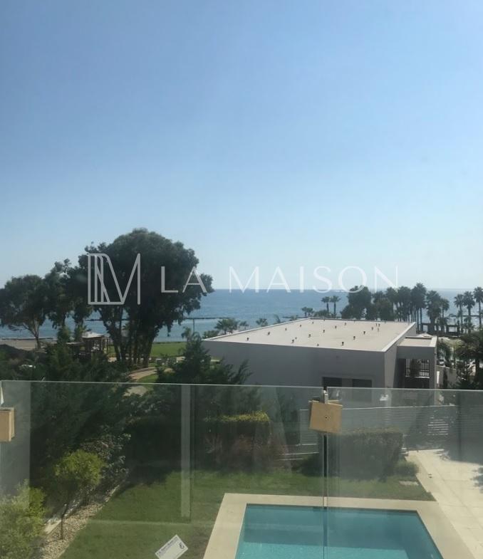 The property has a wonderful sea view with only 30 meters distance to the beach. It is located next to 5 star Hotel & Suites and has a private exit towards the hotel gardens and the seafront. An exceptional development built on 3 levels offering stylish and luxurious lifestyle and carefully selected finishes. The Villa is fully furnished and equipped with high-quality appliances, offering VRV air-conditioning system, underfloor heating, smart home system and a lift connecting the 3 levels. A spacious covered garage for two cars is also available.