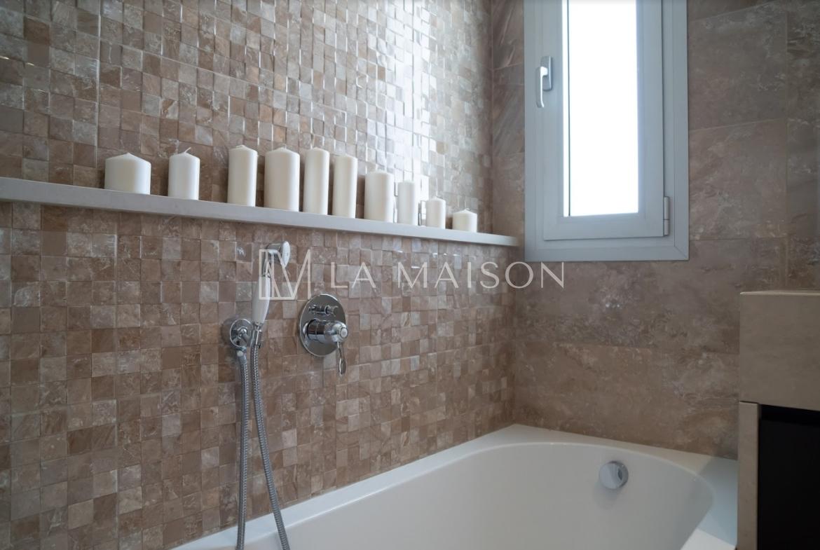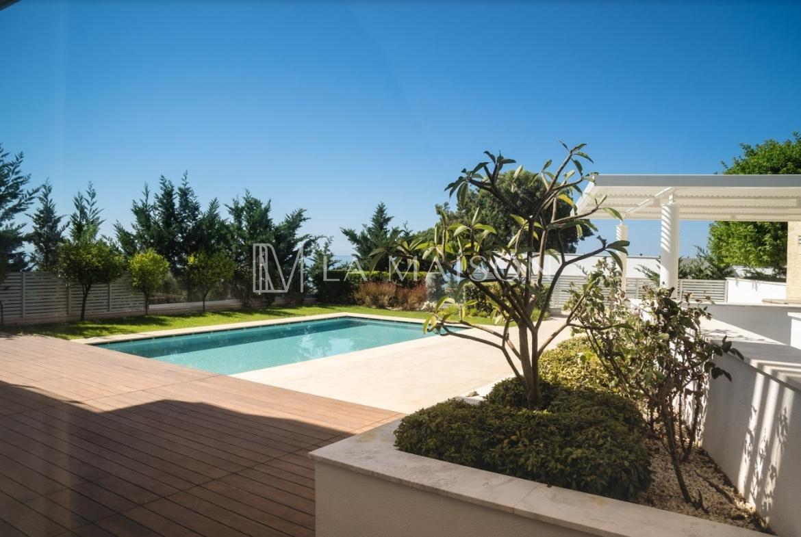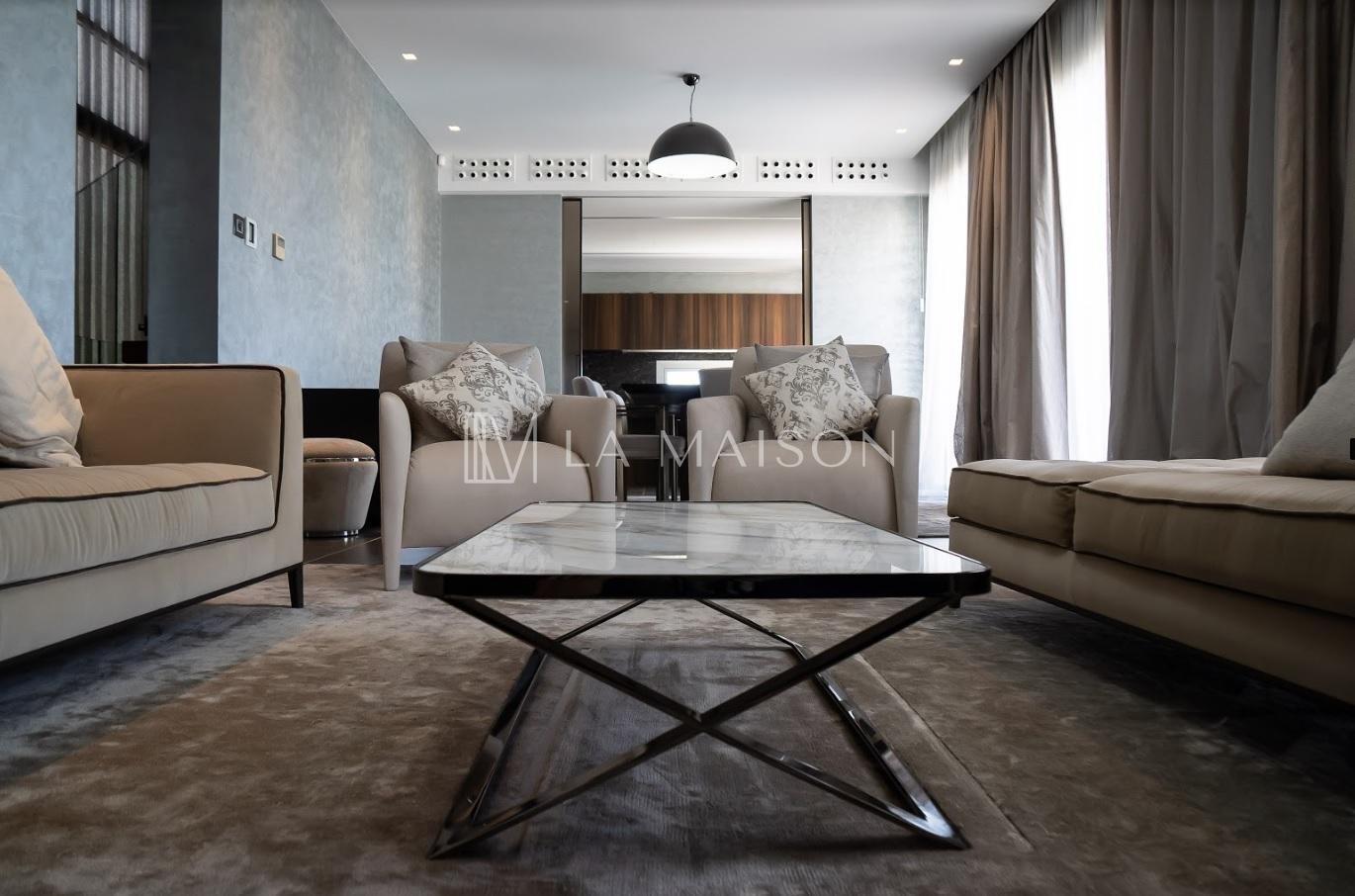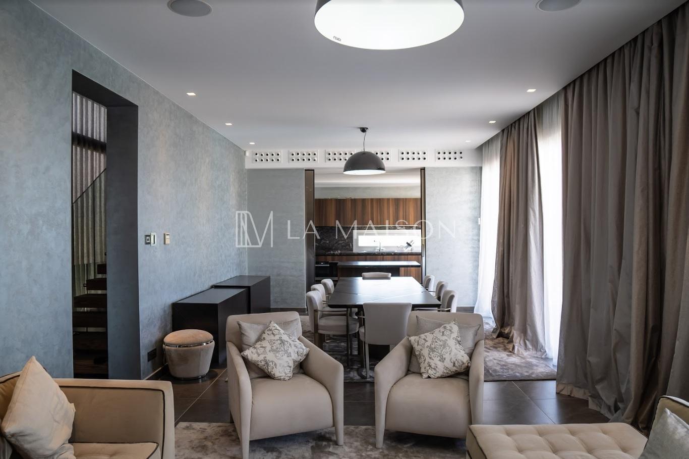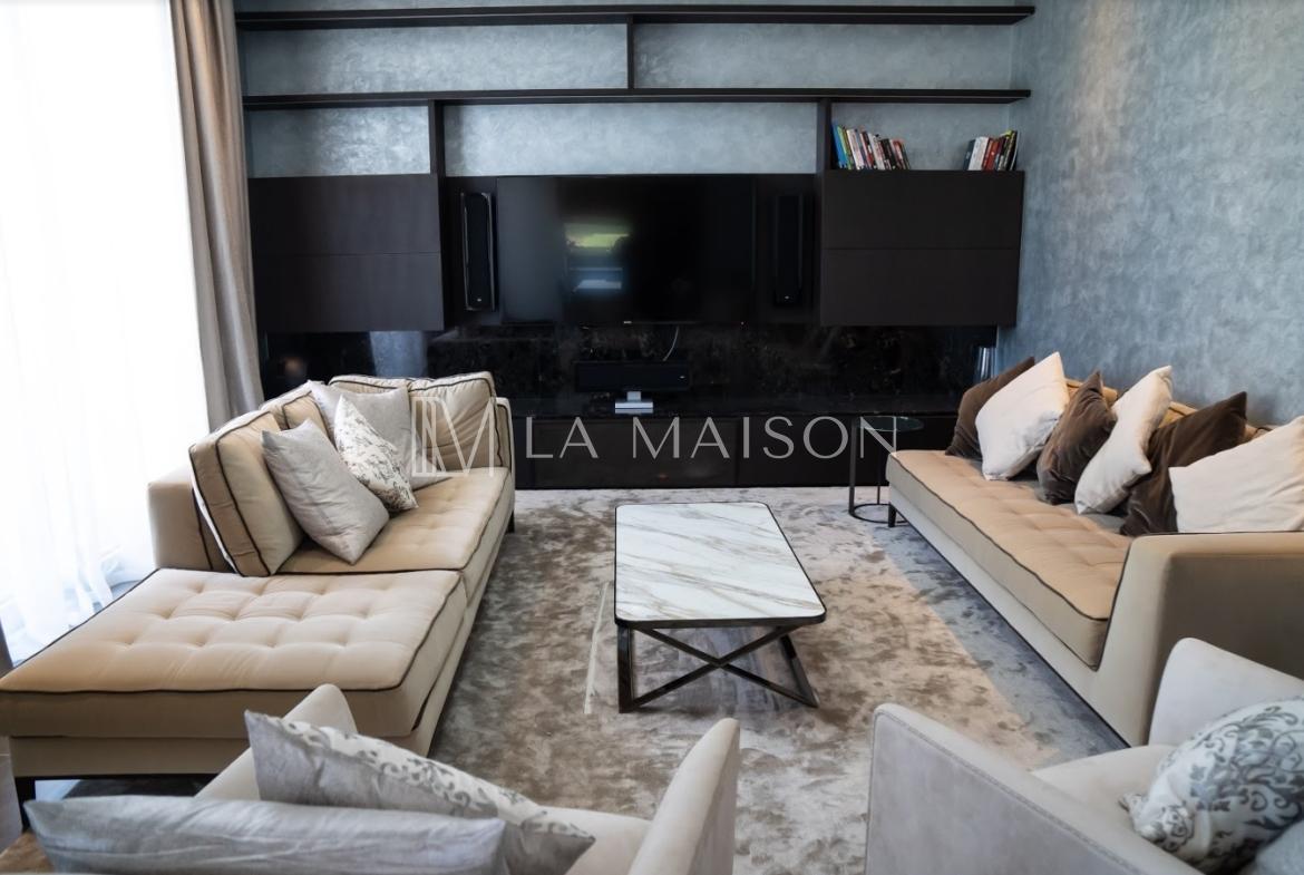 The property has a wonderful sea view with only 30 meters distance to the beach. It is located next to 5 star Hotel & Suites and has a private exit towards the hotel gardens and the seafront. An exceptional development built on 3 levels offering stylish and luxurious lifestyle and carefully selected finishes. The Villa is fully furnished and equipped with high-quality appliances, offering VRV air-conditioning system, underfloor heating, smart home system and a lift connecting the 3 levels. A spacious covered garage for two cars is also available.
