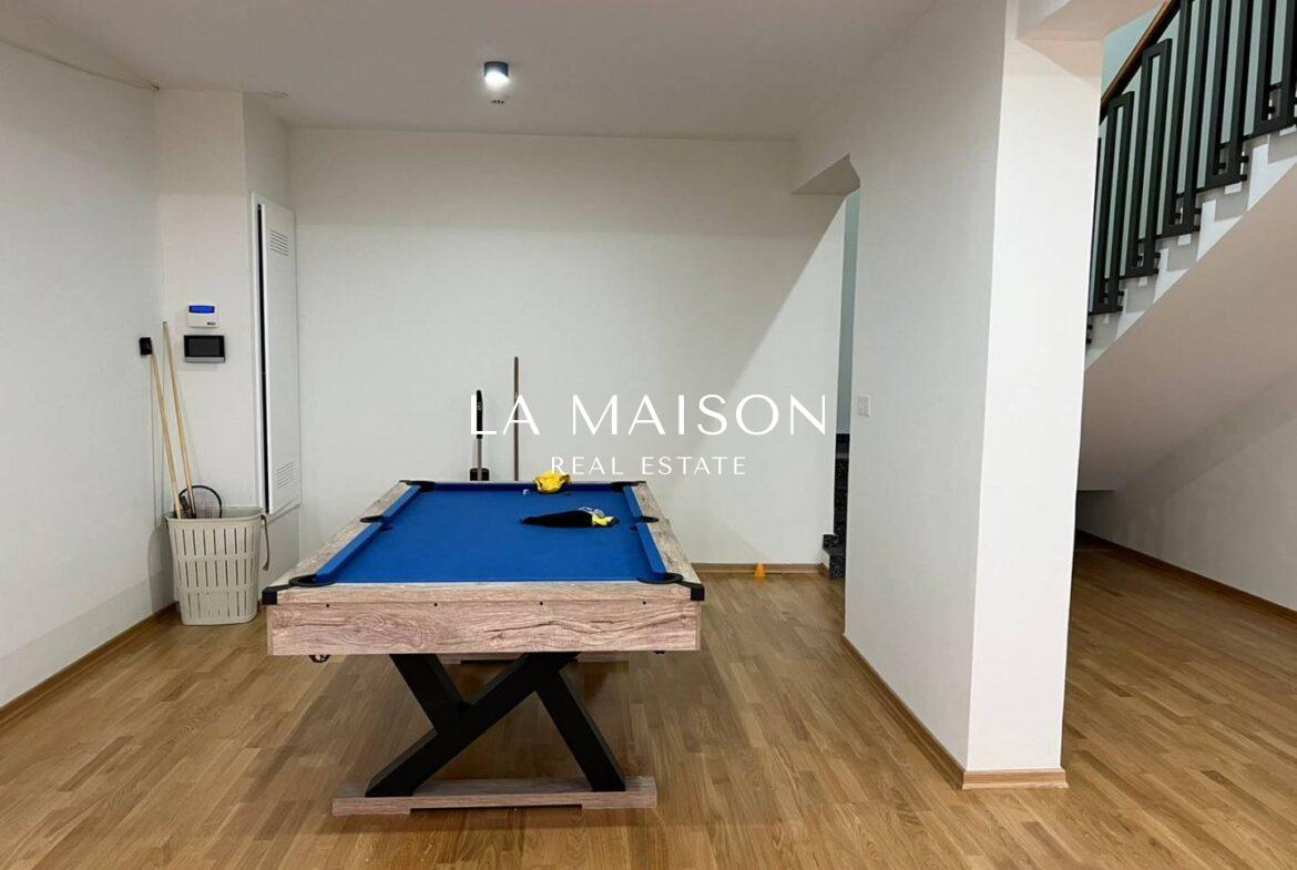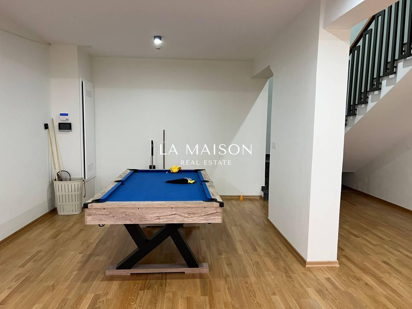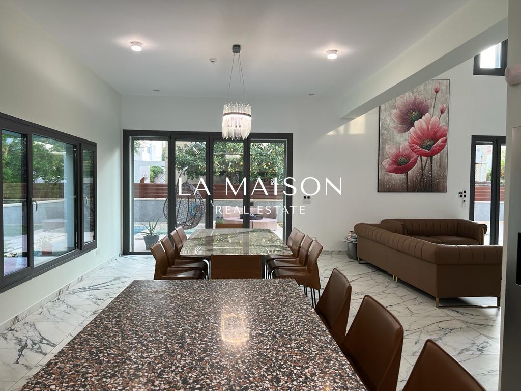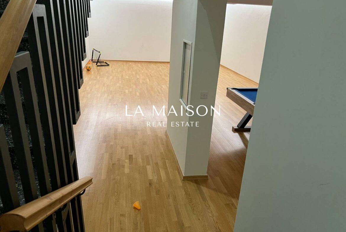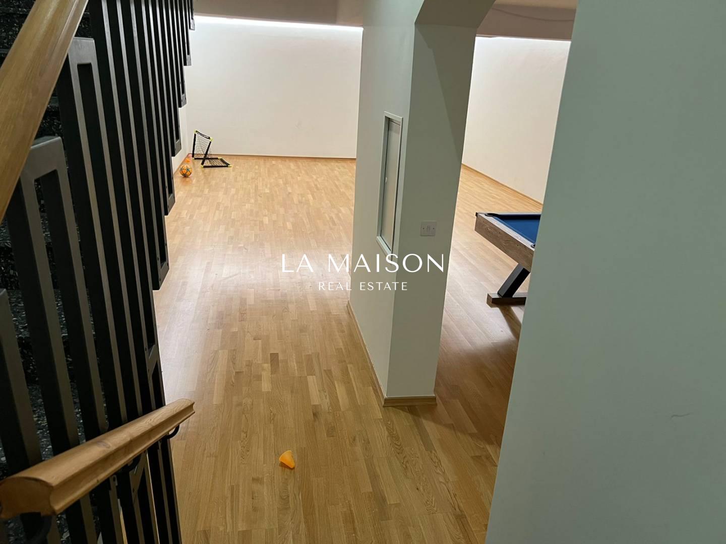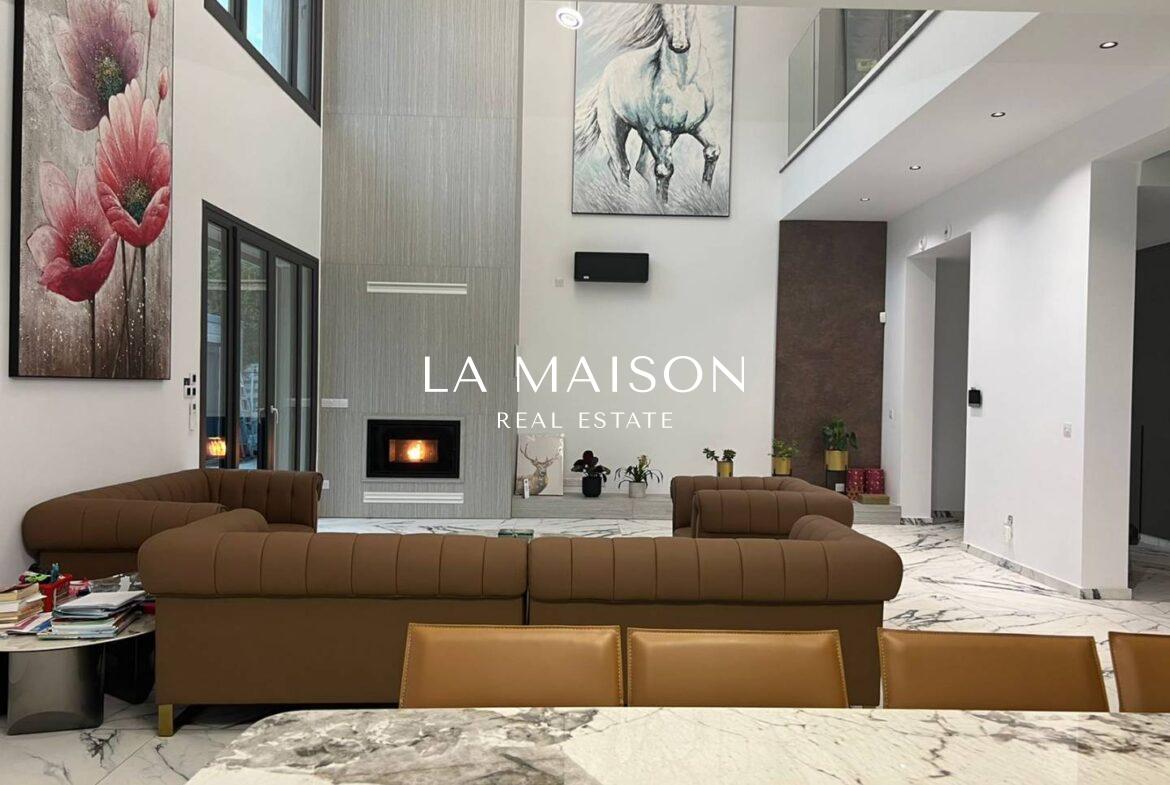 Luxurious detached two-story residence situated in the Archangelos Area of Strovolos. This contemporary home features a generous ground floor layout comprising a spacious living room with a fireplace, a dining area, a fully equipped kitchen, and a guest toilet. Upstairs, there are five bedrooms, each with its own en-suite bathroom. The basement hosts storage spaces and an en-suite maid’s room. Additionally, a sizable roof garden offers breathtaking city views.