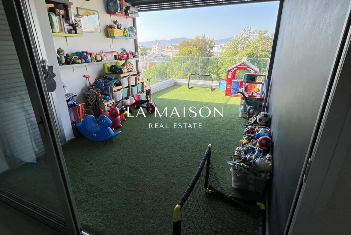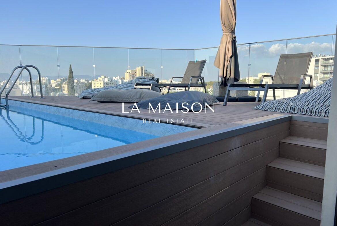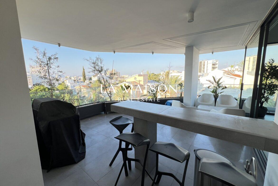 This luxurious and modern four-bedroom apartment is now available for sale in Strovolos. Offering a generous 205 square meters of internal living space, the residence is complemented by 56 square meters of covered verandas and 40 square meters of uncovered verandas, providing abundant outdoor areas perfect for relaxation and entertainment.