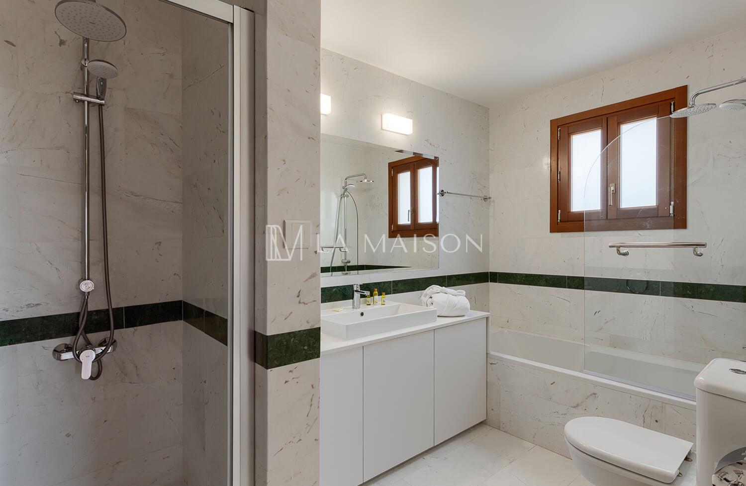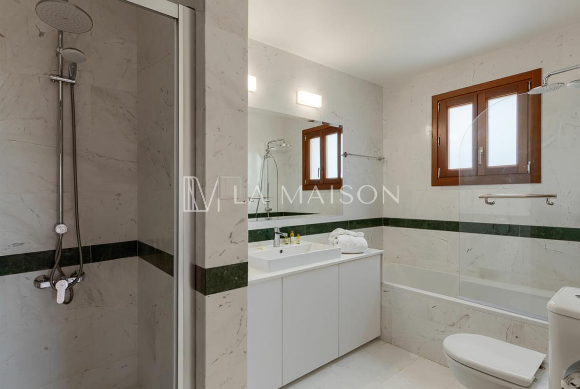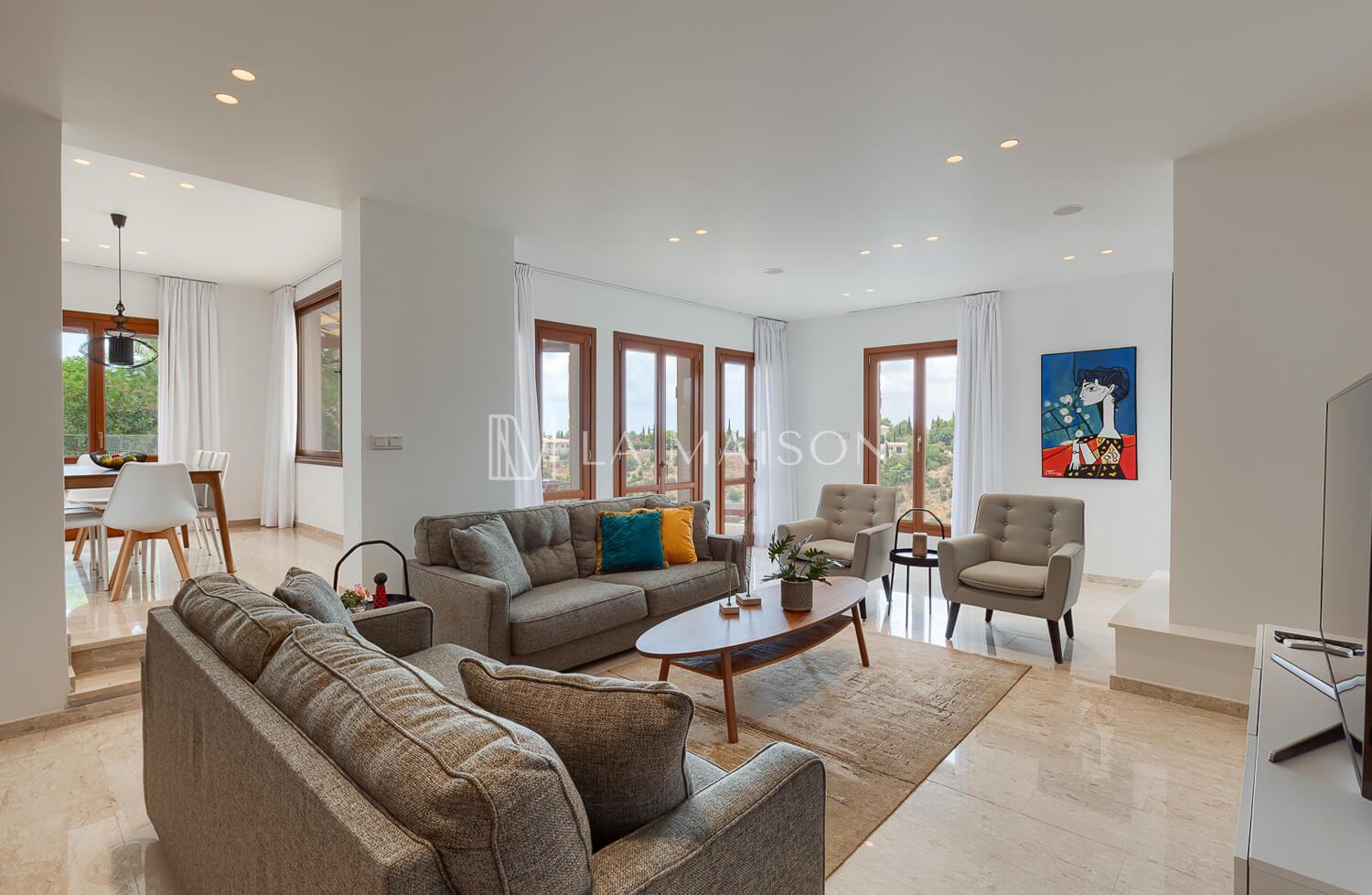The Villa has been decorated with elegant furnishings and has modern fixtures and fittings throughout. The dining area offers large panoramic windows, allowing one’s view to drift over the natural and allowing much light into this luxurious property. The wonderful spacious bedrooms offer Parquet flooring throughout, along with fitted wardrobes and all come with en-suite decorative bathrooms.