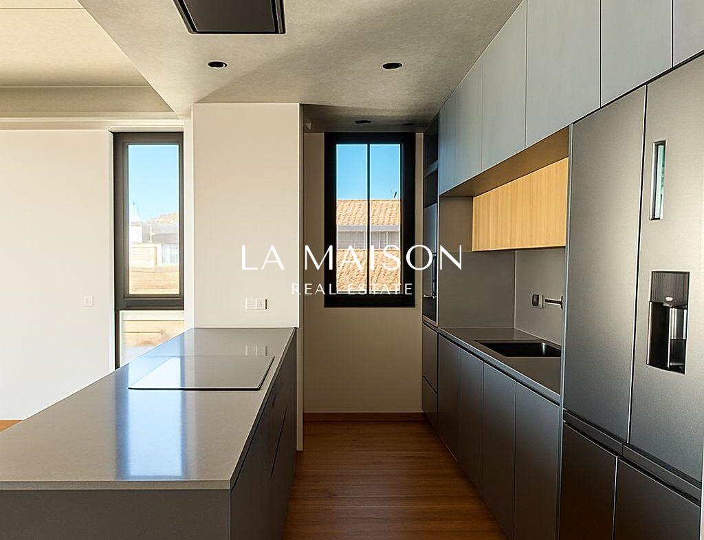 A brand-new modern residence located in one of Engomi’s most desirable neighborhoods, combining contemporary architecture with top-quality finishes and smart home comfort. This spacious two-bedroom apartment offers a total internal area of 95 sqm plus 20 sqm of covered verandas, providing a perfect balance between comfort, functionality, and style. The apartment features an open-plan living area with large floor-to-ceiling openings that flood the space with natural daylight and extend seamlessly onto the private balcony. The modern Italian-designed kitchen integrates elegantly with the dining and living areas, creating a fluid and inviting environment ideal for modern living. It includes three toilets and two showers, designed with large ceramic tiles, European sanitary ware, and sleek modern fixtures. Premium specifications include solid wood parquet flooring, underfloor heating with remote control, energy-efficient Daikin cooling, photovoltaic system , and an individual solar water heater. The apartment is fitted with LED ceiling and track lighting, high ceilings with modern linear design, thermal and sound insulation, thermal double-glazed aluminum frames, tempered glass balcony handrails, UV-resistant glazing, and smart mirrors. Security features include a camera system, controlled building access, and private storage with covered parking. The development also offers landscaped common areas with plants, providing an elegant, sustainable, and peaceful environment. This residence sets a new standard of living in Engomi, offering a warm, elegant, and functional environment with cutting-edge energy efficiency and premium materials, ideal for professionals, couples, or small families seeking a refined lifestyle in a quiet yet central location just minutes away from universities, embassies, and the city center.