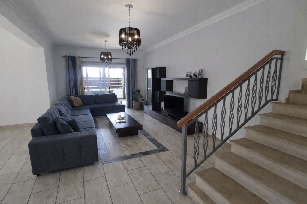 The property offers approximately 204 sq.m. of internal covered areas, complemented by an additional 15 sq.m. of covered outdoor living space. The ground floor is thoughtfully designed with a spacious open-plan living and dining area connected to a fully equipped kitchen, creating a functional and comfortable family environment.