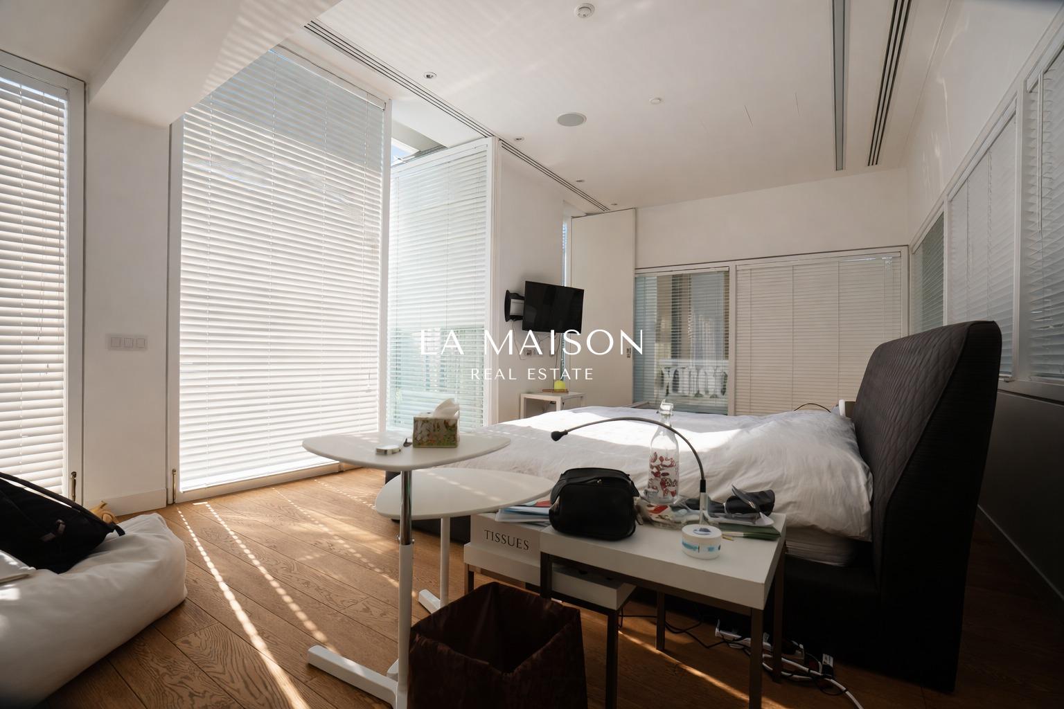 The master bedroom is uniquely connected to an exclusive basement retreat featuring a sauna, spa, jacuzzi, and walk-in wardrobe, providing a private sanctuary dedicated to relaxation and wellness.