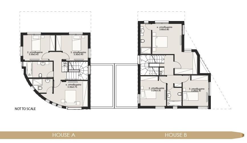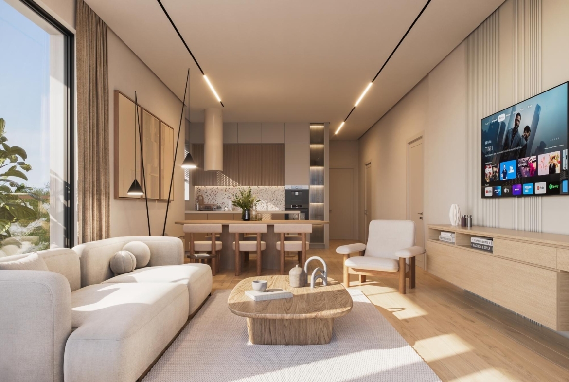 Designed for modern family living, these 3 bedroom homes offer bright, open spaces and a strong connection to nature. The ground floor features an airy living and dining area with a sleek kitchen and island, while the first floor includes a master ensuite and two bedrooms sharing a bathroom. A private garden, large veranda, and double garage add convenience and comfort. Energy-efficient features like underfloor heating, sound insulation, and solar systems ensure sustainable living in style.