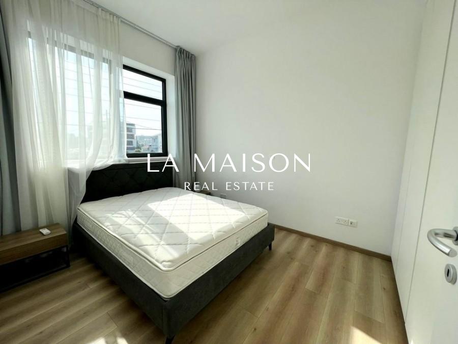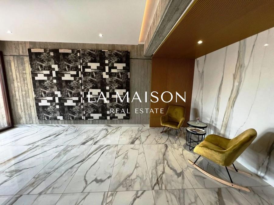 An imposing, four floor development featuring stylish, contemporary architecture that emphasizes sharp angles and geometric shapes. With a glass and concrete facade in shades of dark grey, complemented by stark white walls and dark wood louvers, the building exudes an aura of majesty and luxury. Each of the 13 apartments are evenly spaced out across four floors, with four two bedroom apartments on the first to the third floor and one three bedroom apartment on the fourth floor. In this way, Residences creates a sense of community and neighborliness among its residents, while also allowing a sense of privacy and security, as well as the added benefit of a generously spaced out home.