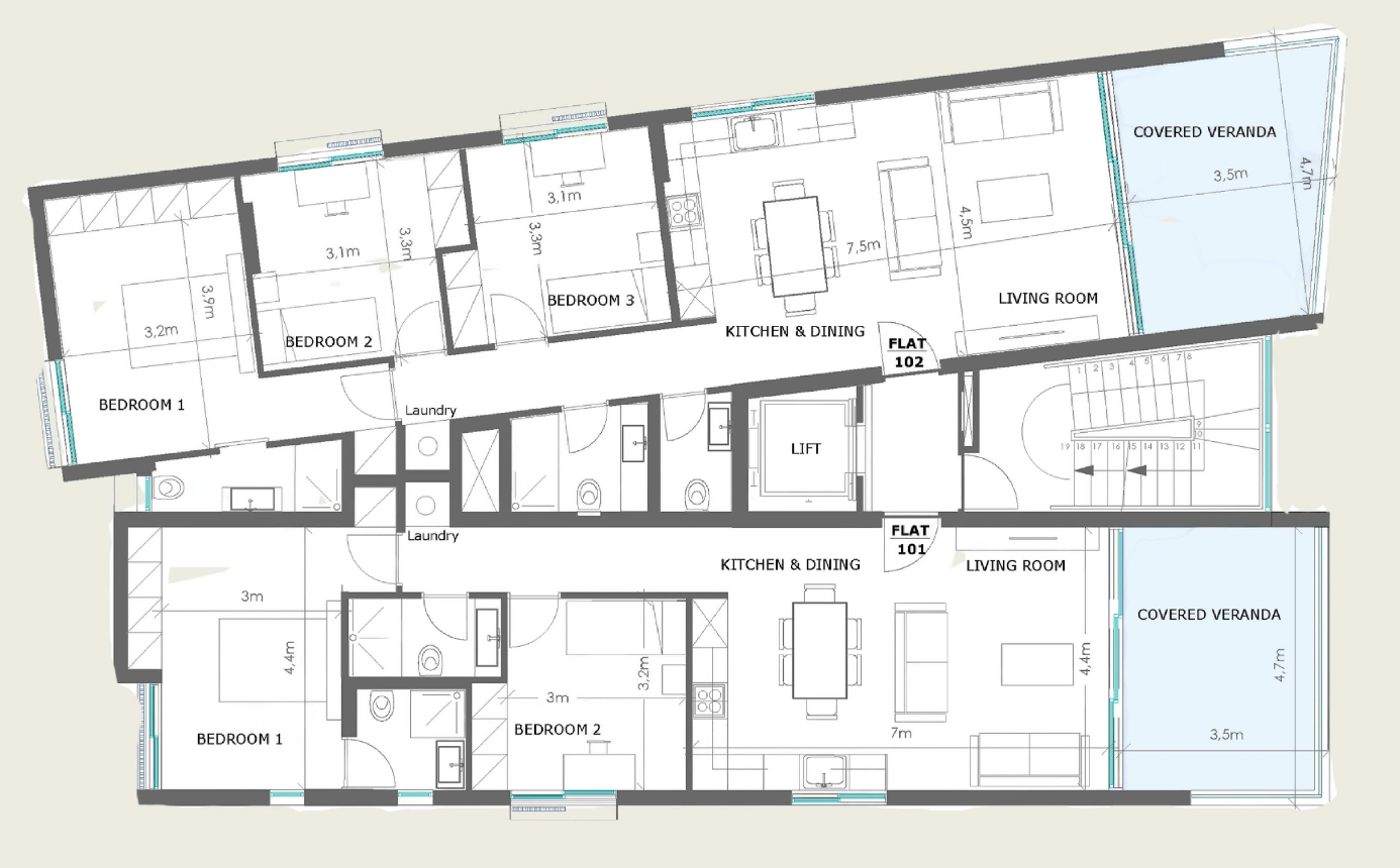 Spacious and thoughtfully designed, these 3 bedroom apartments offer a perfect blend of functionality and contemporary elegance. The open-plan Pedini kitchen flows seamlessly into bright living spaces, complemented by hardwood parquet flooring and large balcony doors that frame city views. An en-suite master bedroom, separate laundry area, underfloor heating, and complete air-conditioning provide comfort and practicality. Energy-efficient features such as photovoltaic systems, electric shading, and A-grade thermal insulation enhance sustainability. Expansive covered verandas and premium finishes create a home that’s both stylish and practical for modern living.