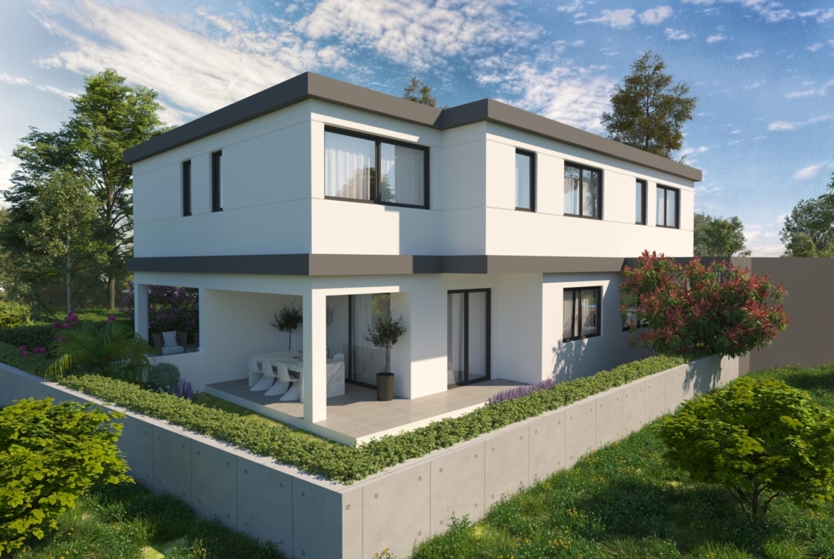 Discover a beautifully designed project of two family homes located in the center of Lakatamia, close to services and amenities such as shopping, dining, schools, supermarkets, and the Pedieos riverbed linear park. Each home features a contemporary layout with spacious, open-plan interiors filled with natural light and finished with the finest materials. The ground floor boasts a large living room, a guest W.C., a dining area, and a stylish kitchen overlooking a lavish garden. A modern staircase leads to the top floor, which includes three spacious bedrooms, a family bathroom, and a laundry area. The master bedroom is en-suite with a walk-in closet.