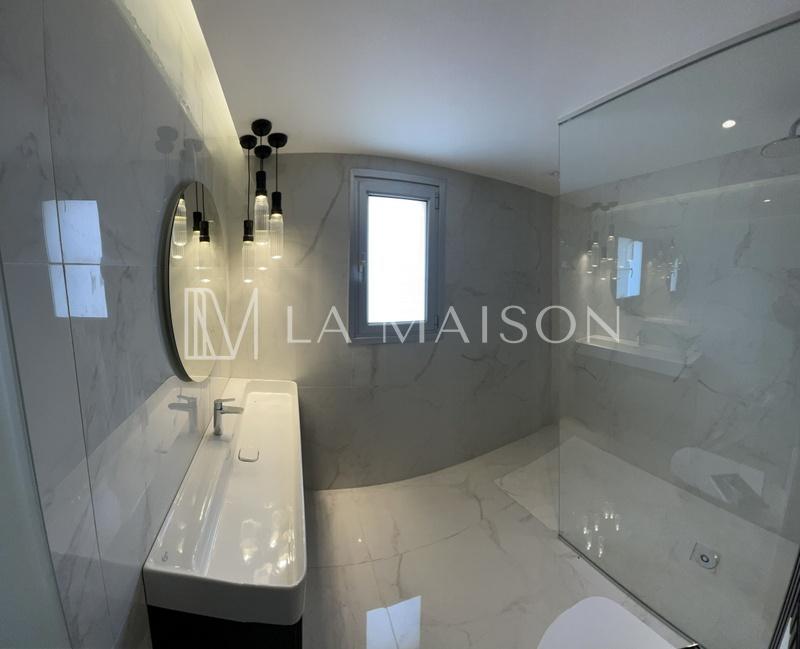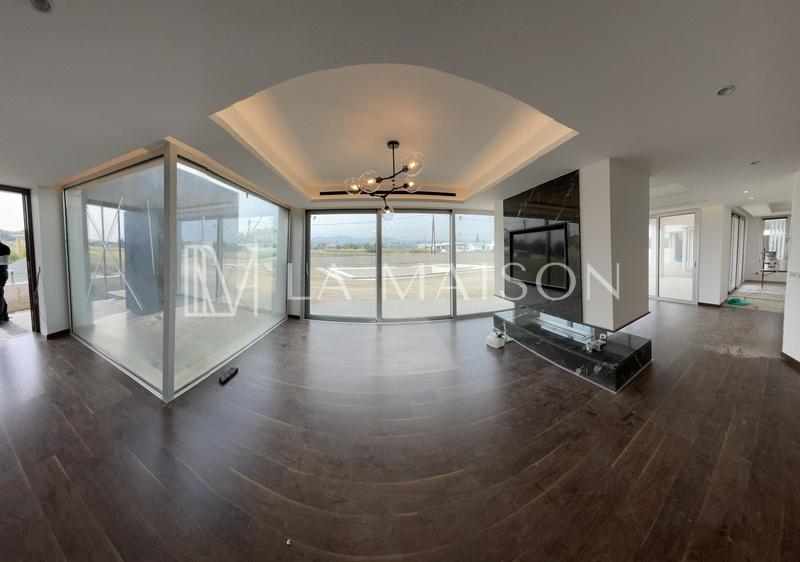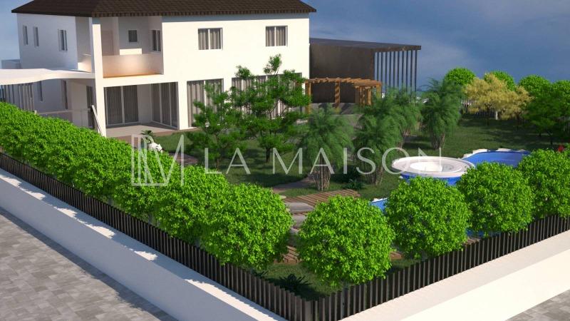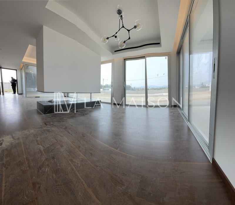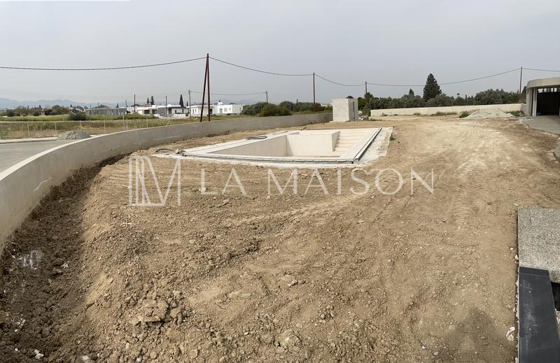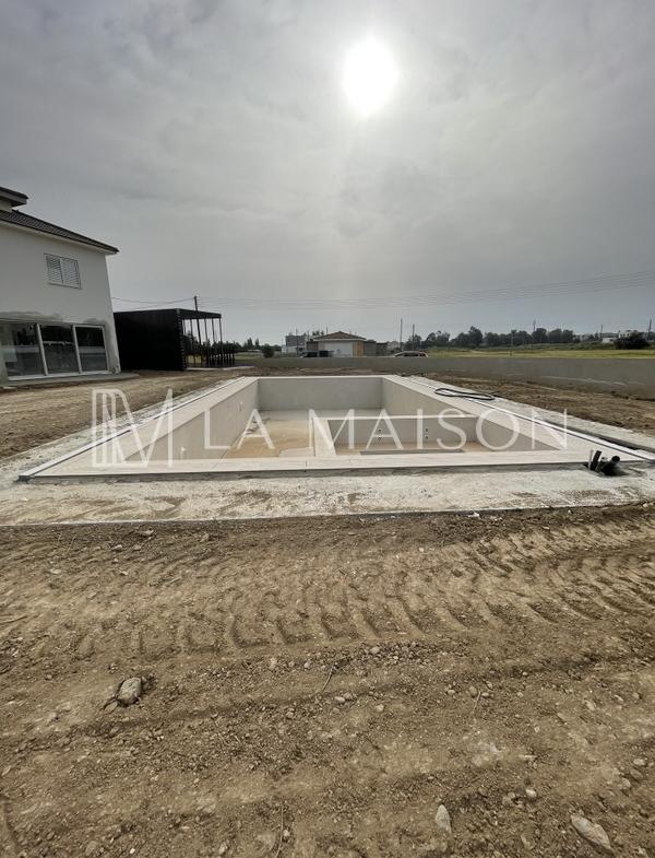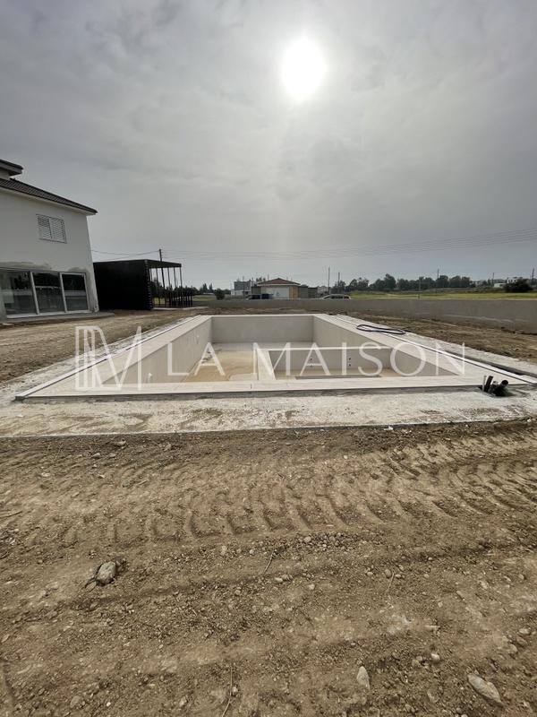 This luxury new house is located in Psimolofou area and is built on a plot of land of more than 1,000 square meters. It boasts an impressive entrance, a big living/dining room with two fire place, a separate kitchen with day room,  and a guest WC on the ground floor. A big covered veranda opens up to the patio and outside garden featuring mature trees, grass, and an overflow swimming pool with barbeque area and a Bar. 4 bedrooms en-suit upstairs with a small kitchen, there is also an attic. Unique Opportunity for the discerning buyer.