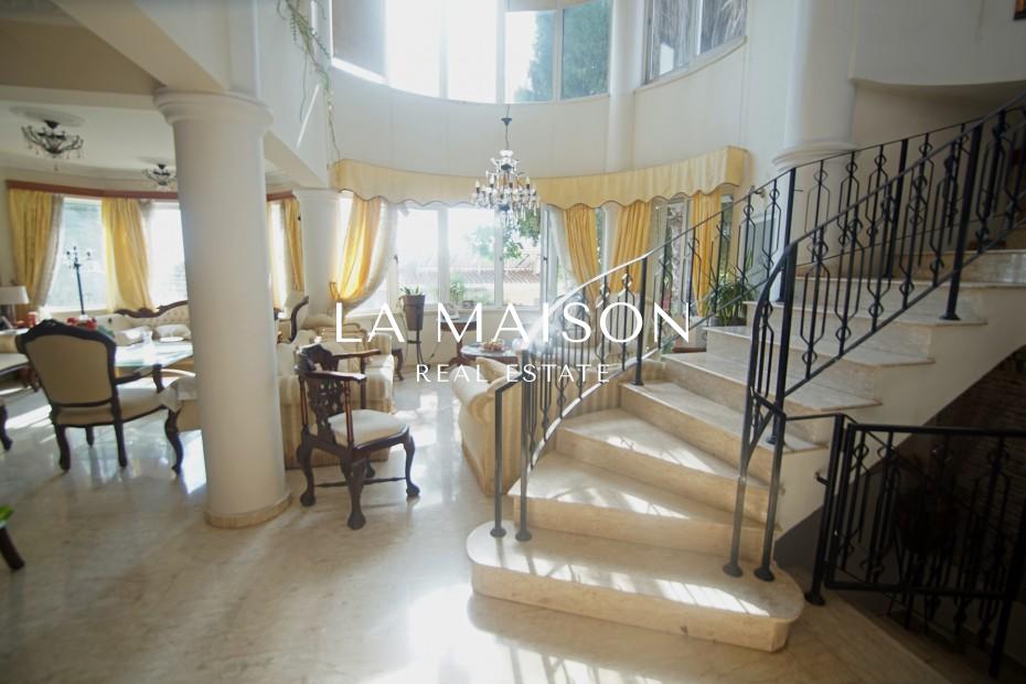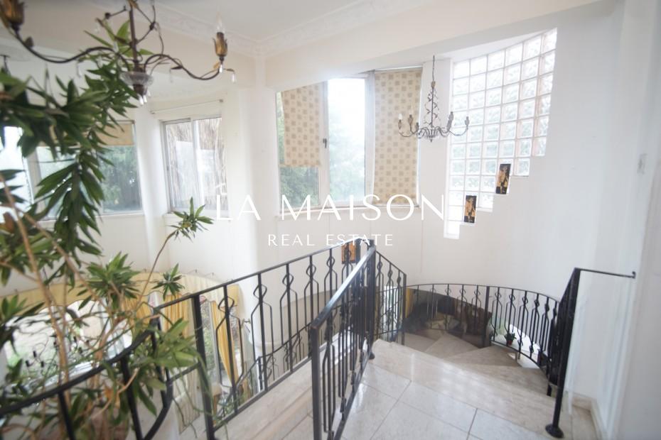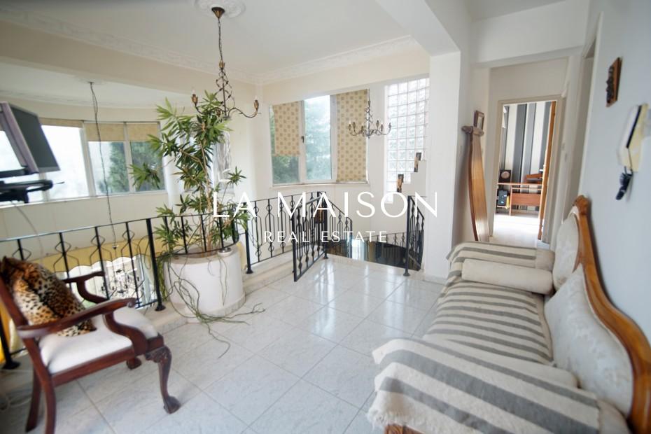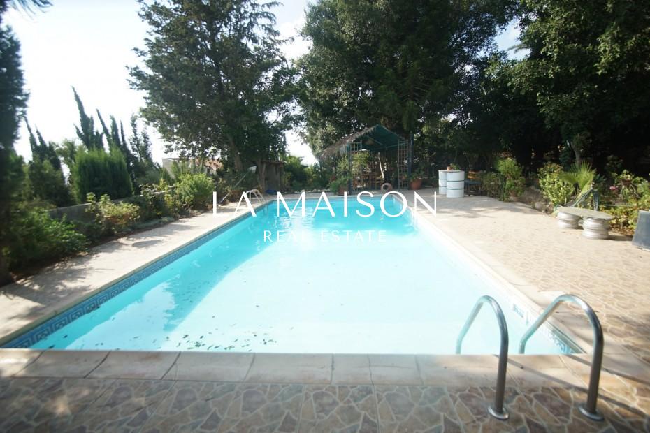 7 bedroom 3 bathroom 370m2 covered detached villa situated in heart of Chloraka close to the St.George Hotel and a short drive to Coral Bay. The villa is situated on a 2676m2 plot ,just a few hundred meters from the beachfront and benefits from air conditioning, study, marble stairs and private pool. Through the front door you enter into the entrance hall with extremely bright living area, to the right hand side, curving stairs rising to the first floor where are located 3 double bedrooms, family bathroom, 2 balconies. Ground floor comprises from separate spacious kitchen with a small sitting area offering a fire place, master bedroom, guest toilet, 2 rooms witch can be used as an office or a gym room.