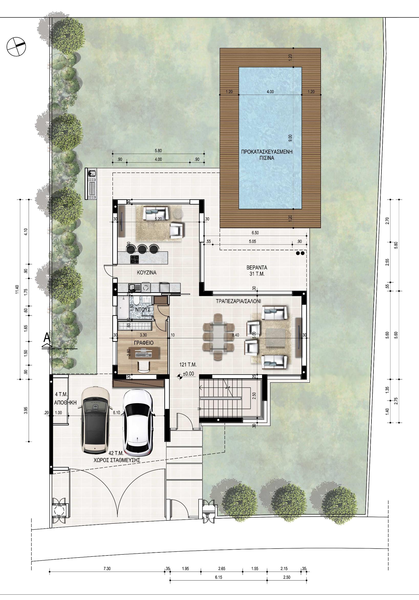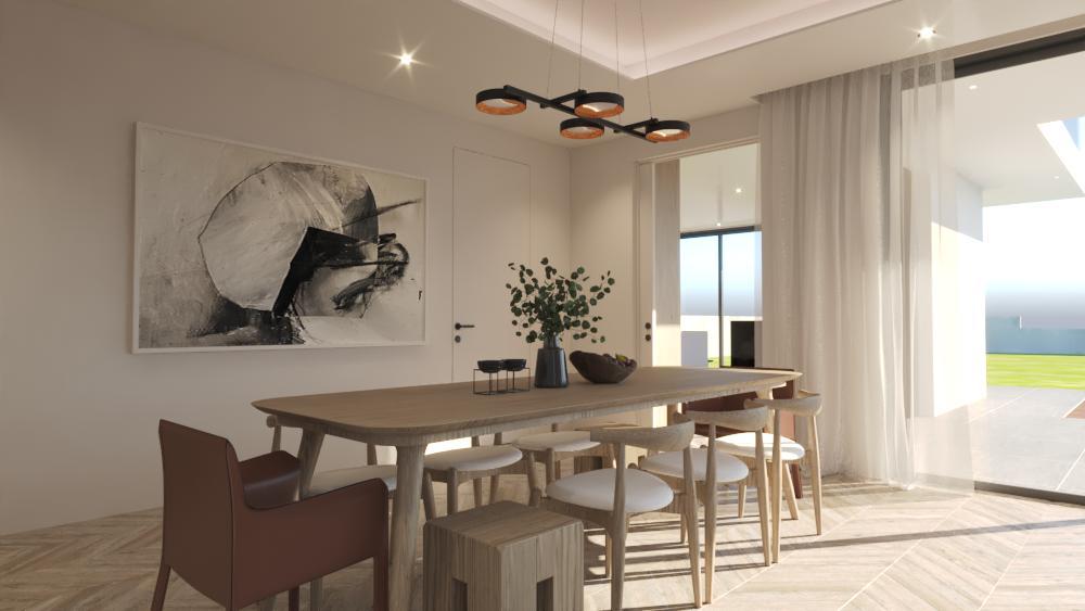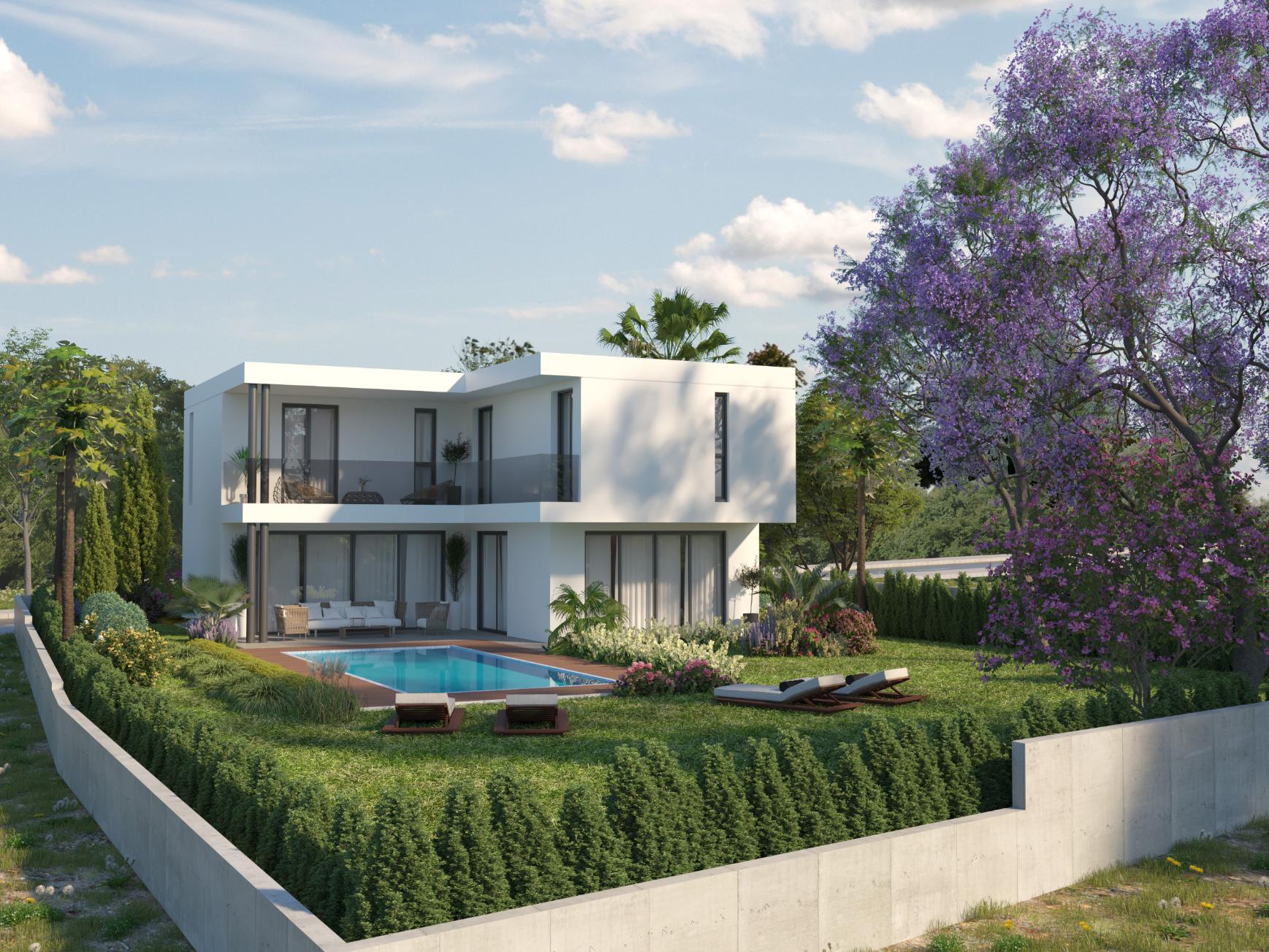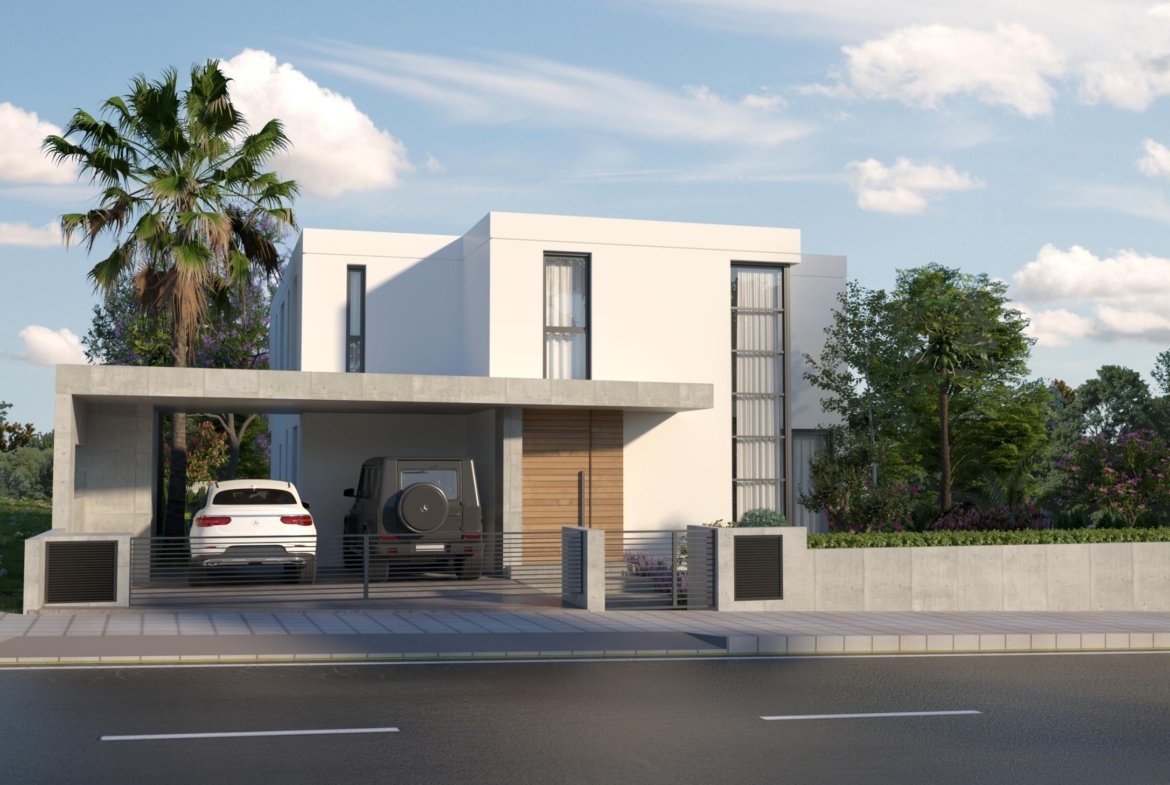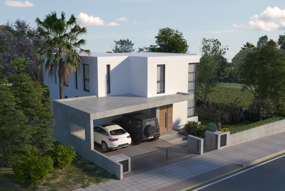 Experience luxurious living in this exquisite 4+1 bedroom villa, blending contemporary design with green building technologies. Situated on a large plot bordering a green area, the two-story home features a double car park, outdoor storeroom, and optional private pool. The top floor includes two en-suite bedrooms, two additional bedrooms, a family bathroom, and a laundry space. The ground floor offers a serviced playroom/office/guestroom with shower access and an open-plan layout for cooking, dining, and lounging. Wall-to-wall windows provide stunning garden views. Located in a new suburb south of the city, the villa offers excellent access to the motorway and nearby areas like Geri, Latsia, and Aglantzia, as well as key amenities within 1 km.
