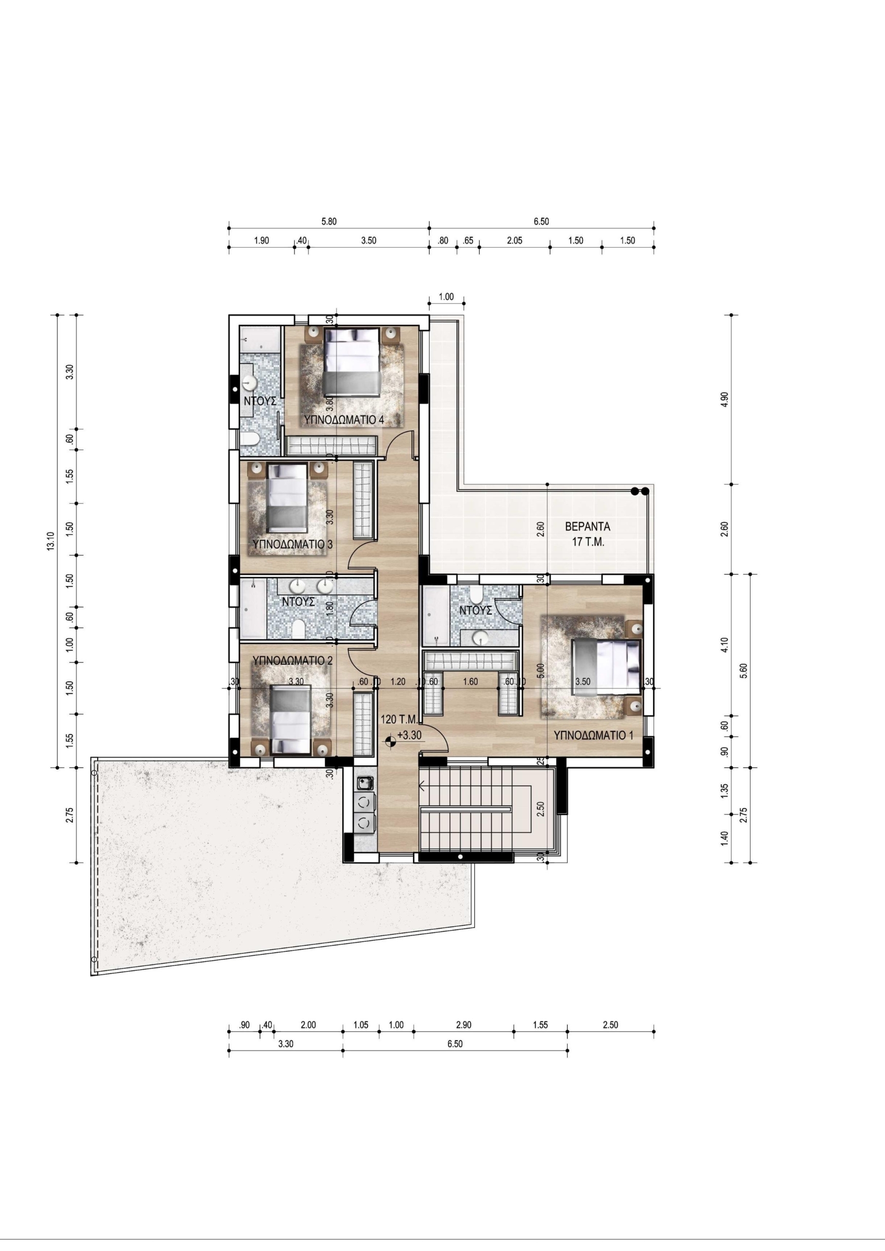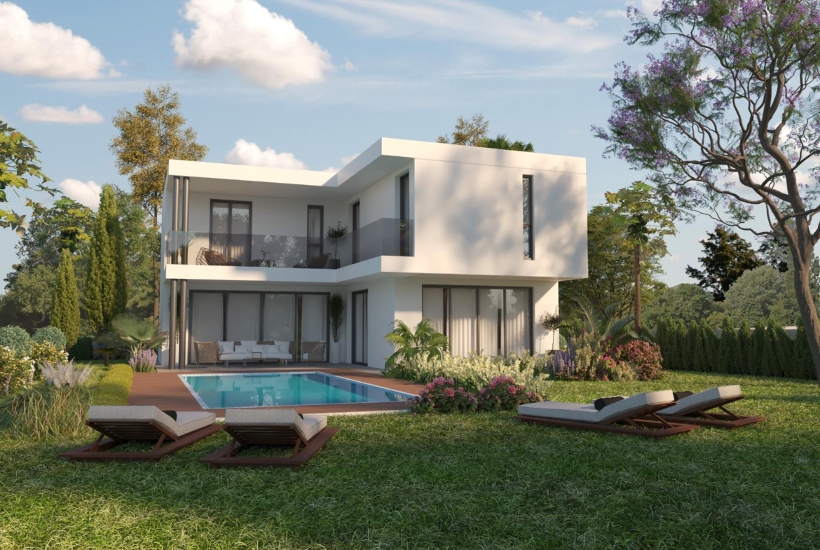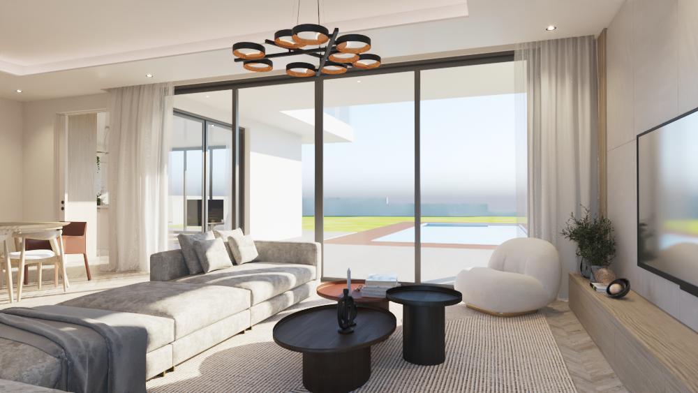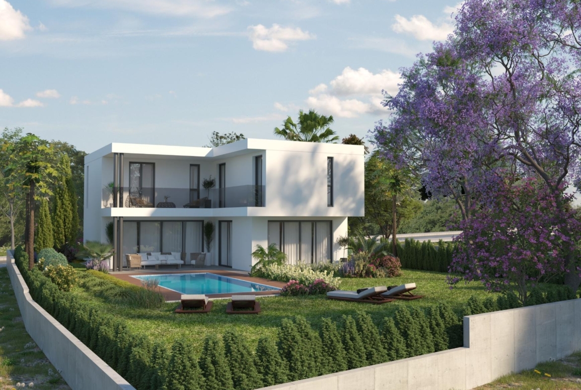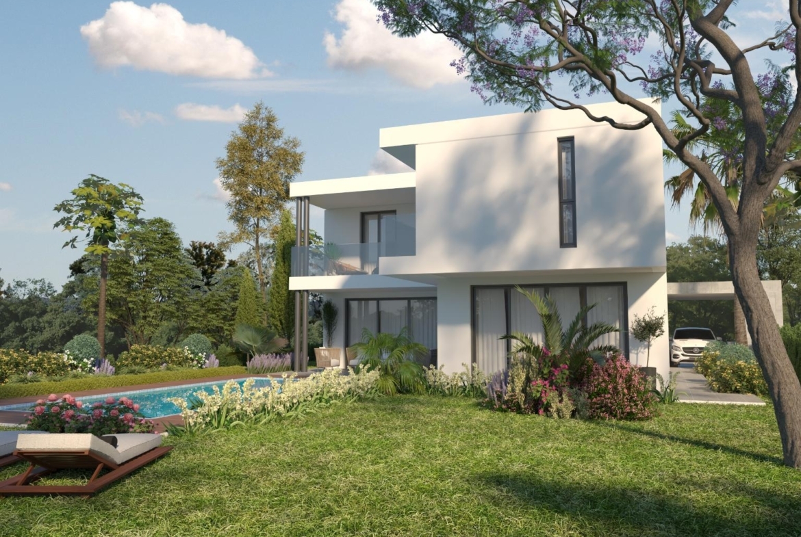 Experience luxurious living in this exquisite 4+1 bedroom villa, blending contemporary design with green building technologies. Situated on a large plot bordering a green area, the two-story home features a double car park, outdoor storeroom, and optional private pool. The top floor includes two en-suite bedrooms, two additional bedrooms, a family bathroom, and a laundry space. The ground floor offers a serviced playroom/office/guestroom with shower access and an open-plan layout for cooking, dining, and lounging. Wall-to-wall windows provide stunning garden views. Located in a new suburb south of the city, the villa offers excellent access to the motorway and nearby areas like Geri, Latsia, and Aglantzia, as well as key amenities within 1 km.