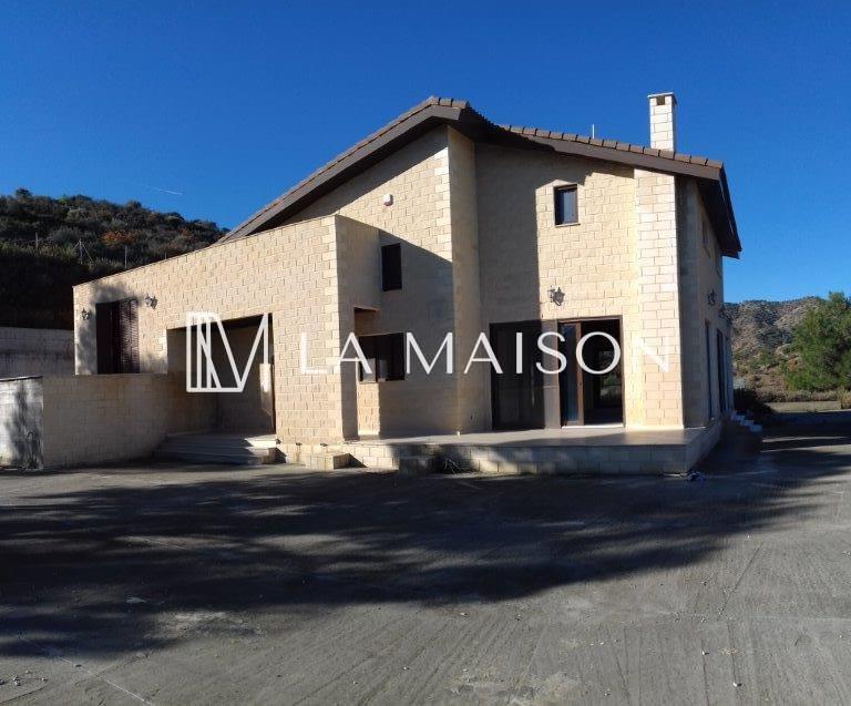 The property  located in the community of Lythrodontas, on a hill with panoramic views. The ground floor comprises of a kitchen, living room, two fireplaces and bathroom while the first floor comprises of four bedrooms all en-suite (total of 200m2). Verandas covered (84m2) and...