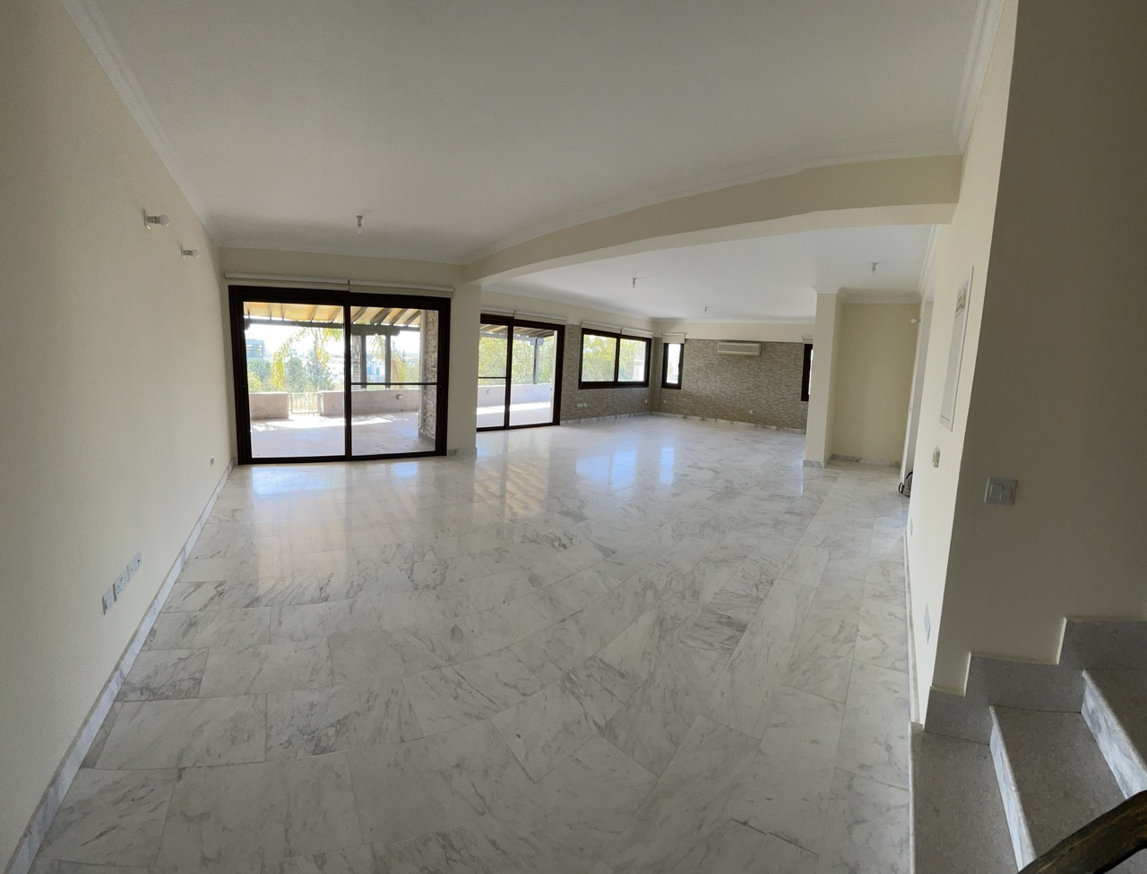 • Living & Dining: Open-plan layout with marble floors