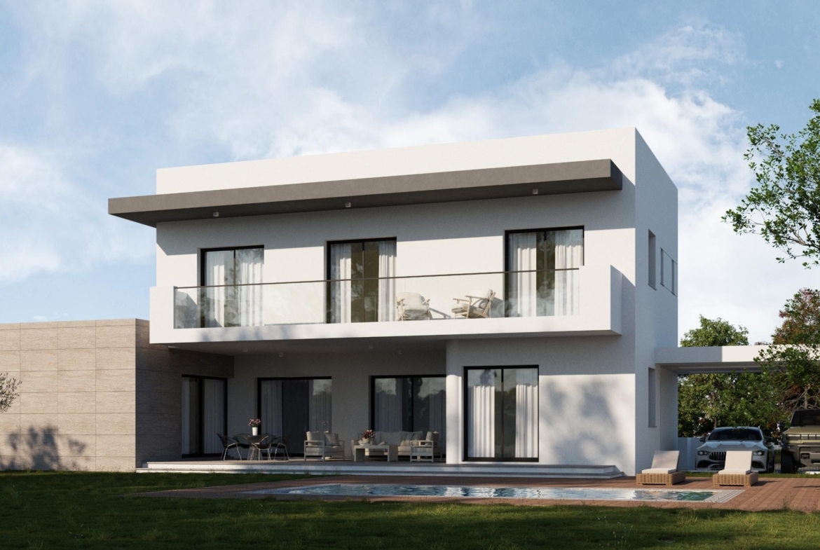 This contemporary home offers a perfect blend of comfort and convenience. Set on a corner plot with a spacious garden and an optional swimming pool, the residence features a double garage and modern design. The ground floor includes open-plan reception and dining areas, a living room, and a large kitchen with a casual seating area, all leading to a covered veranda and garden. Upstairs, the layout includes four spacious bedrooms: a master suite with a walk-in wardrobe and en-suite, plus three bedrooms sharing a common bathroom. A shared veranda overlooking the garden adds a touch of elegance to this thoughtfully designed home.