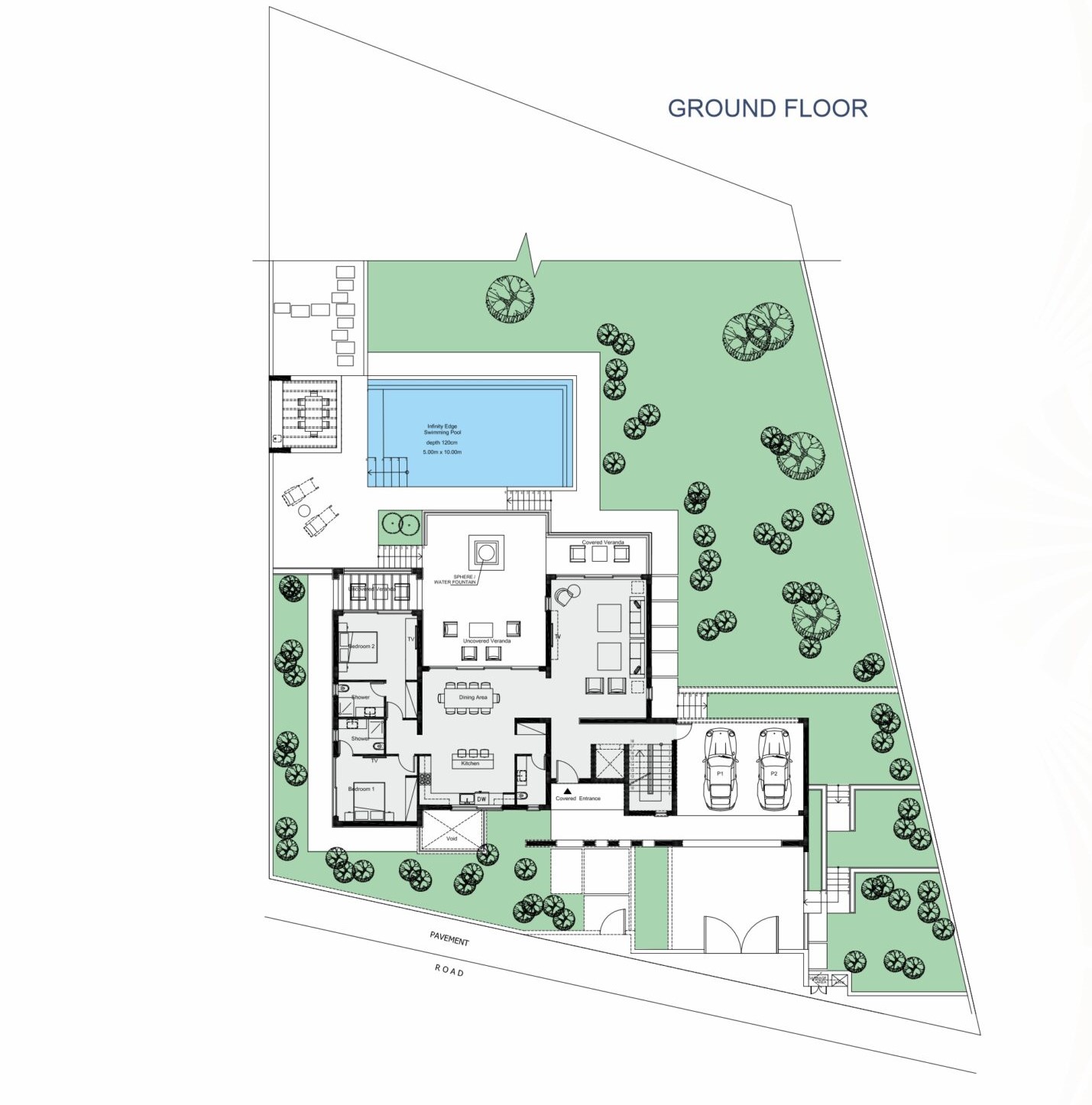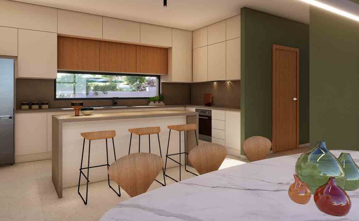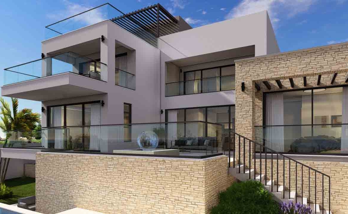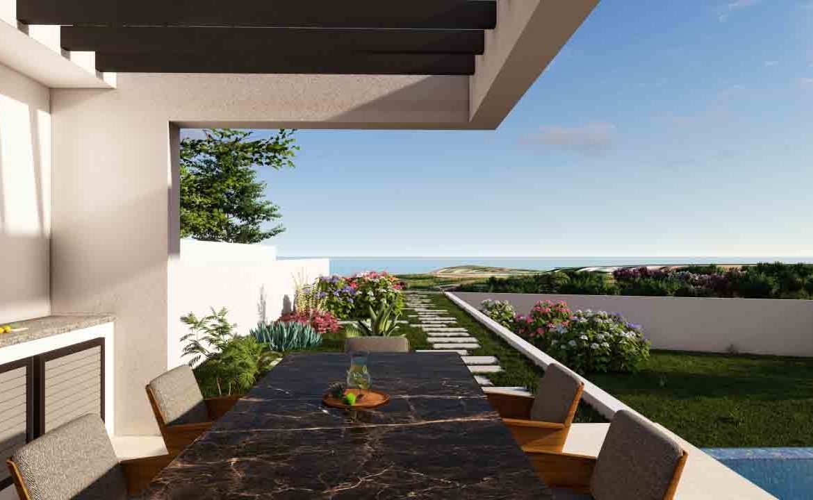 This exceptional 5-bedroom villa, set within a prestigious golf resort, spans four levels including a basement, ground floor, first floor, and roof garden. The ground floor features two bedrooms, while another bedroom is located in the basement, offering direct access to the garden and private swimming pool. Two additional bedrooms are situated on the first floor. The villa boasts a private swimming pool, outdoor barbecue area, spacious indoor and outdoor living spaces, and stunning views of the Mediterranean, the golf course, and surrounding landscapes. The design emphasizes high-quality finishes and meticulous attention to detail.